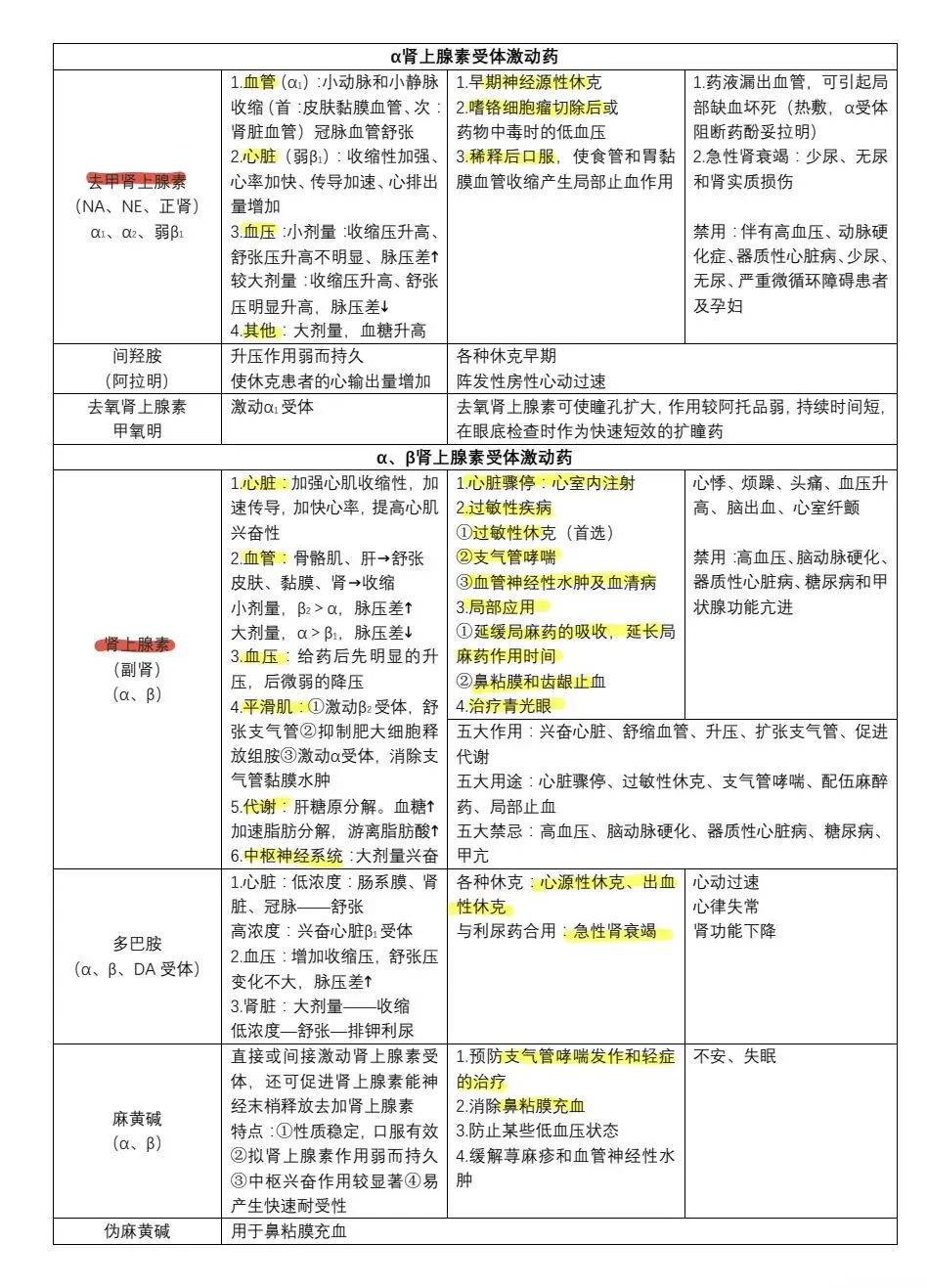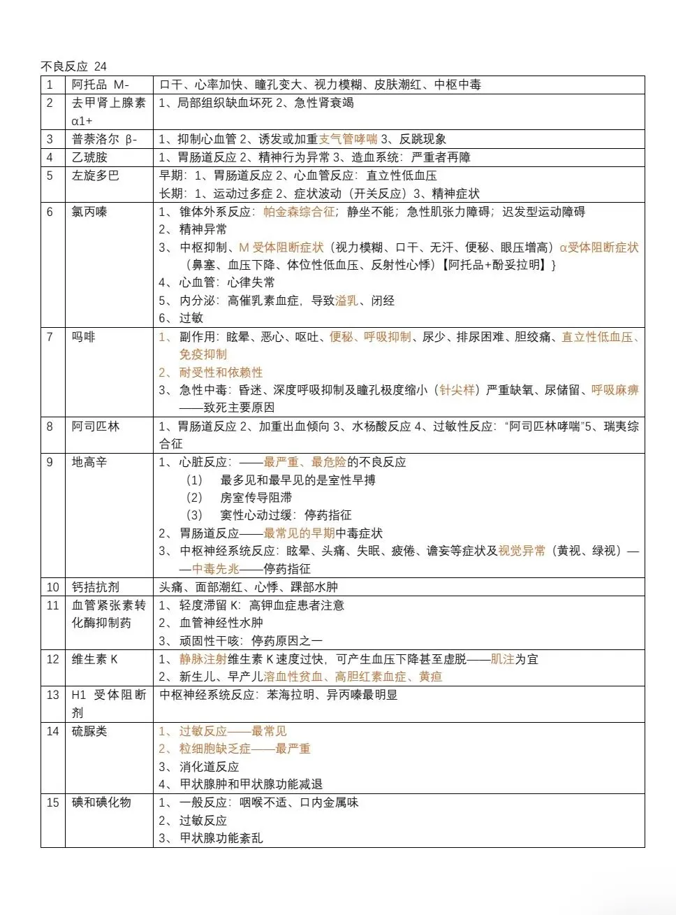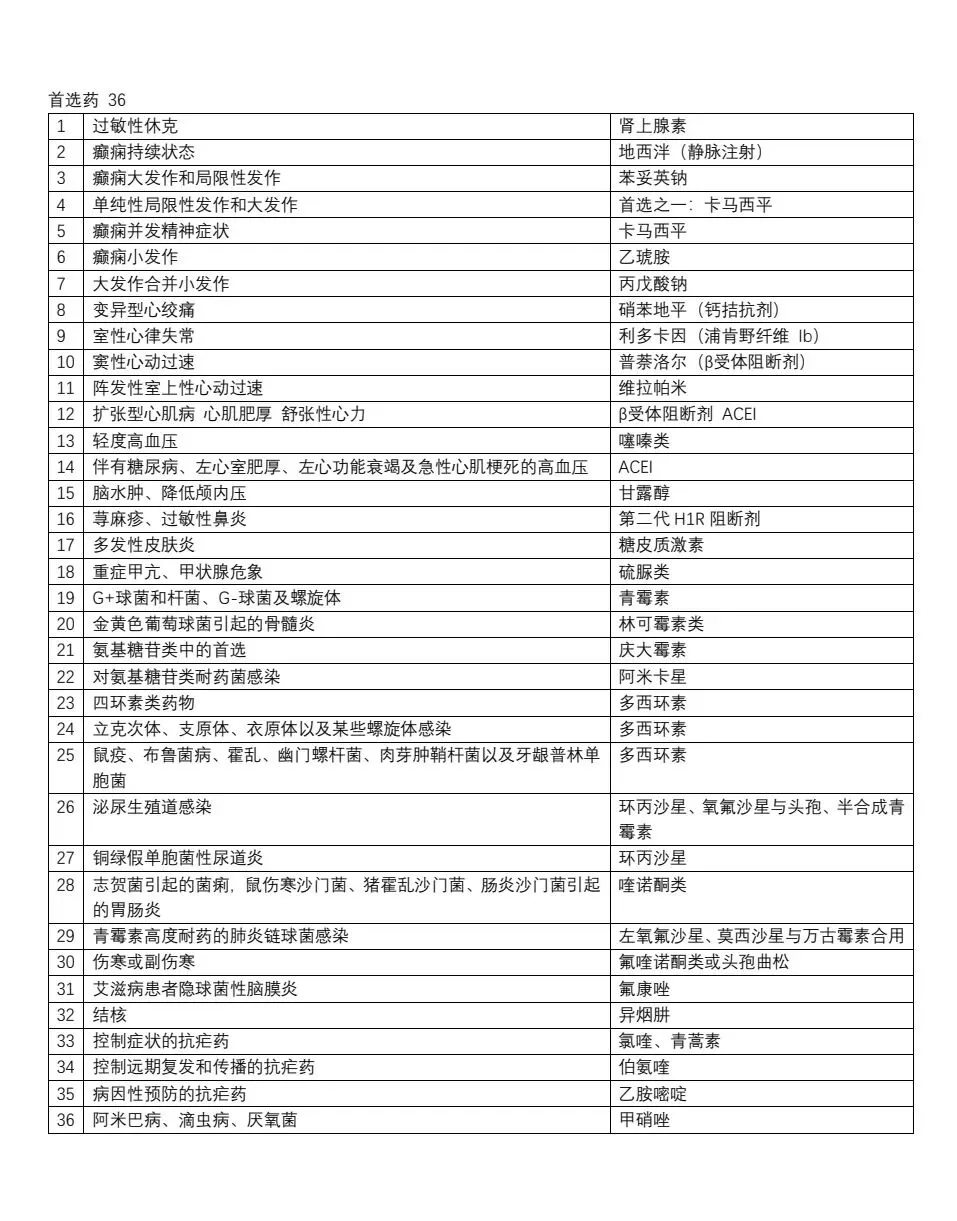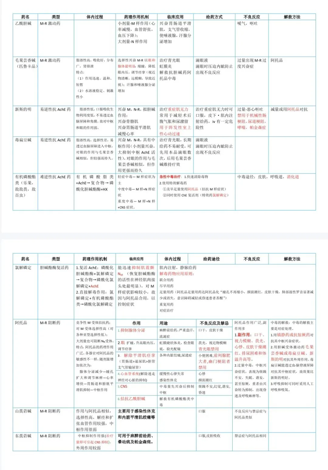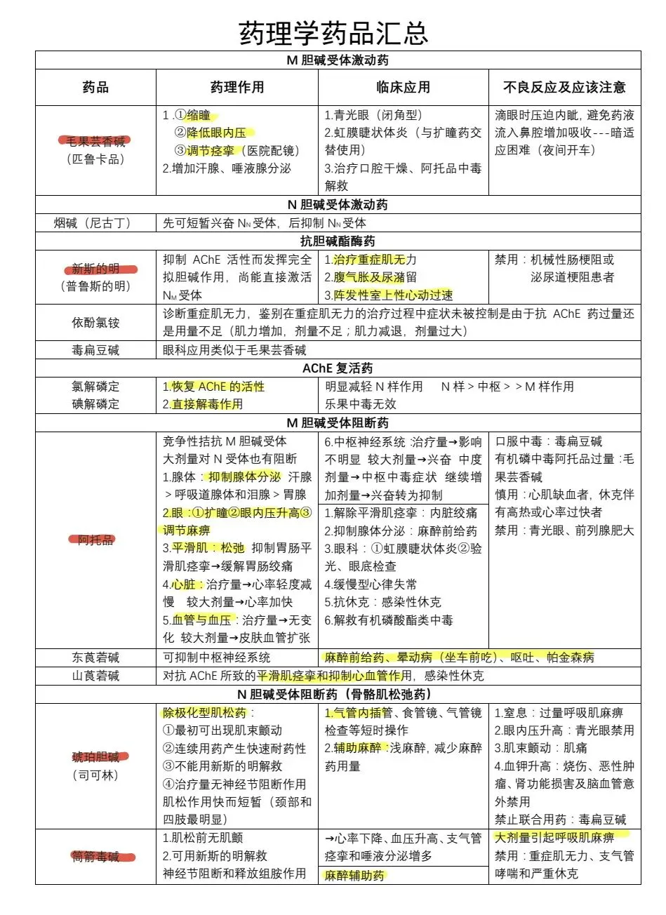 药理学表格