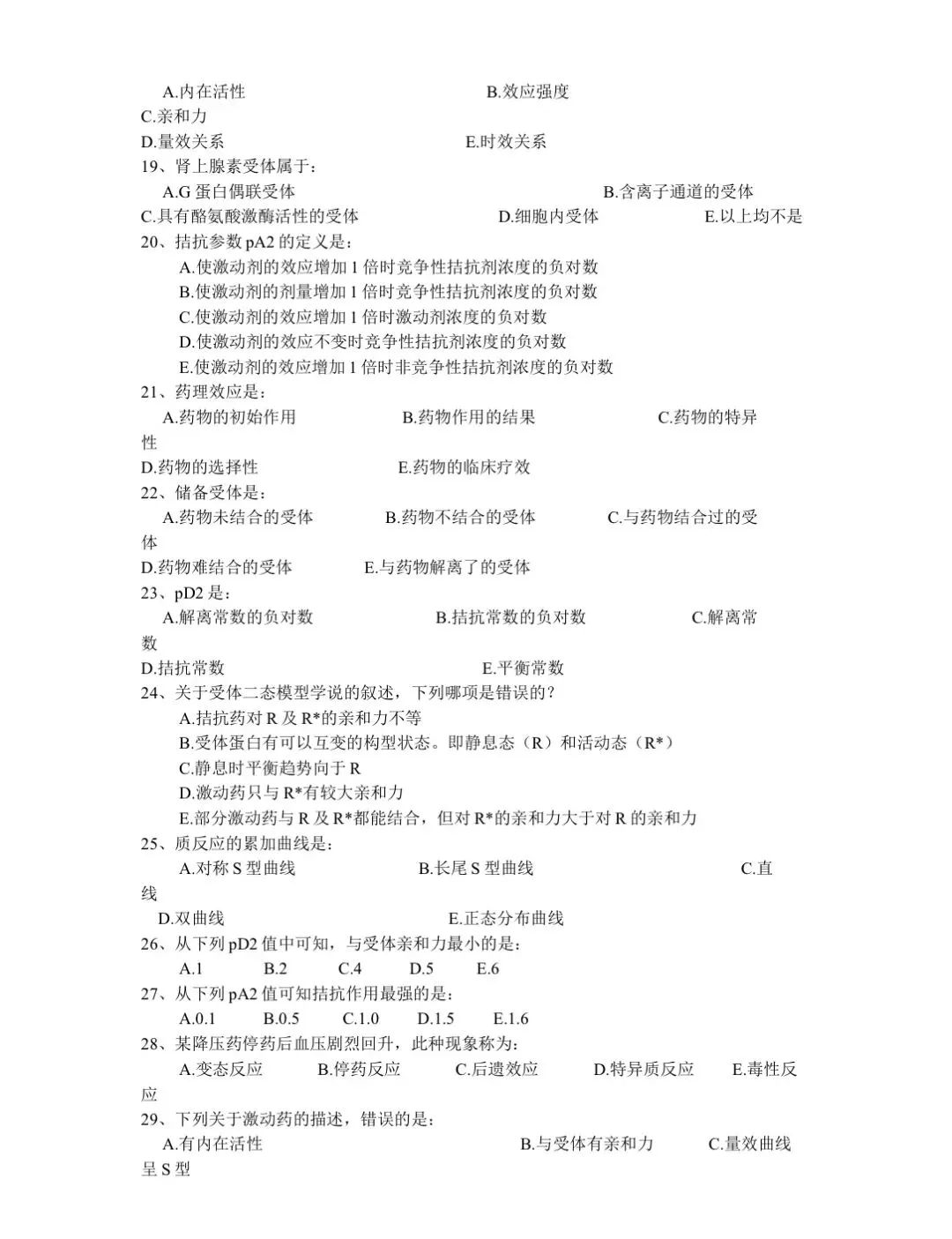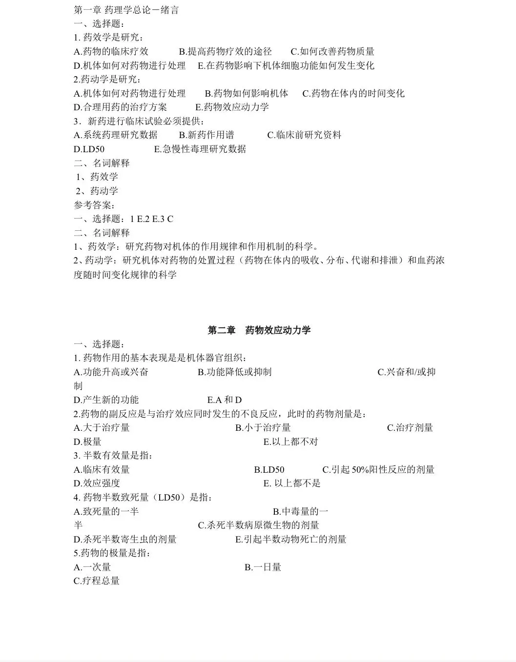 药理学各章节习题