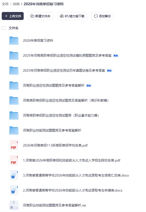 同学们大家好,以下是作者为大家收集和整理的2026年河南省高职单招学校文化素质、职业技能测试、职业适应性测试真题试题汇总,需要的同学可点击相应的链接进行下载打印。