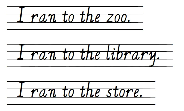 要求:请小朋友们按照正确的书写格式,在英文本上书写下列高频词(每个3遍)