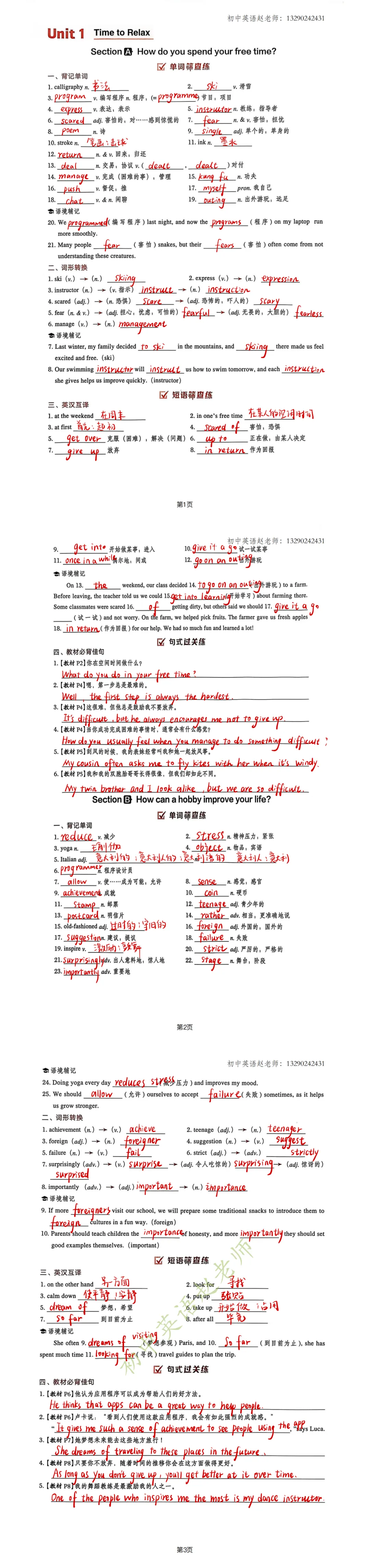 八年级下册英语基础知识涵盖面广,为帮助同学们巩固复习,含青老师准备了手写版基础复习资料,支持打印练习,欢迎使用。