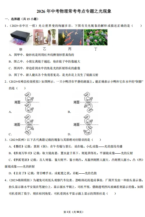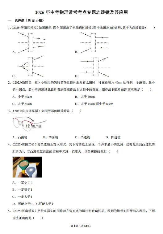 「20260326 2026中考复习 初中物理(常考考点专题资料+光现象+内能+力等23个专题)PDF合集(1)」