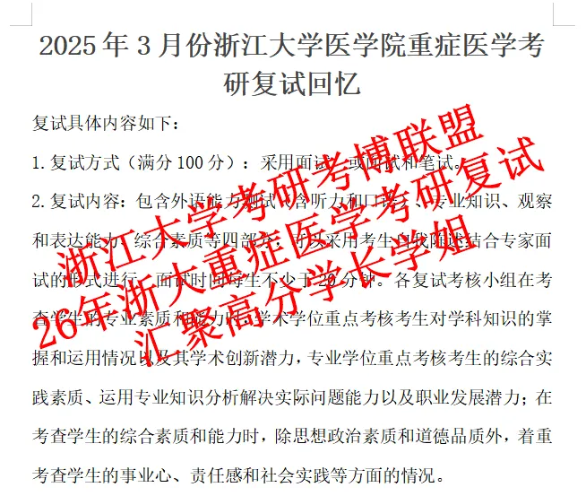 1.2025浙江大学3月份重症科考研复试回忆