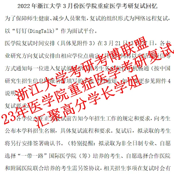 2.2023浙江大学3月份重症科考研复试回忆