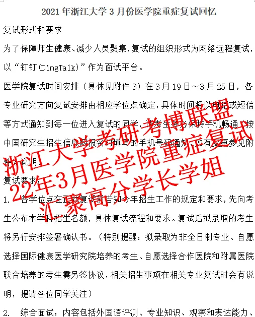 4.2021浙江大学3月份重症科考研复试回忆