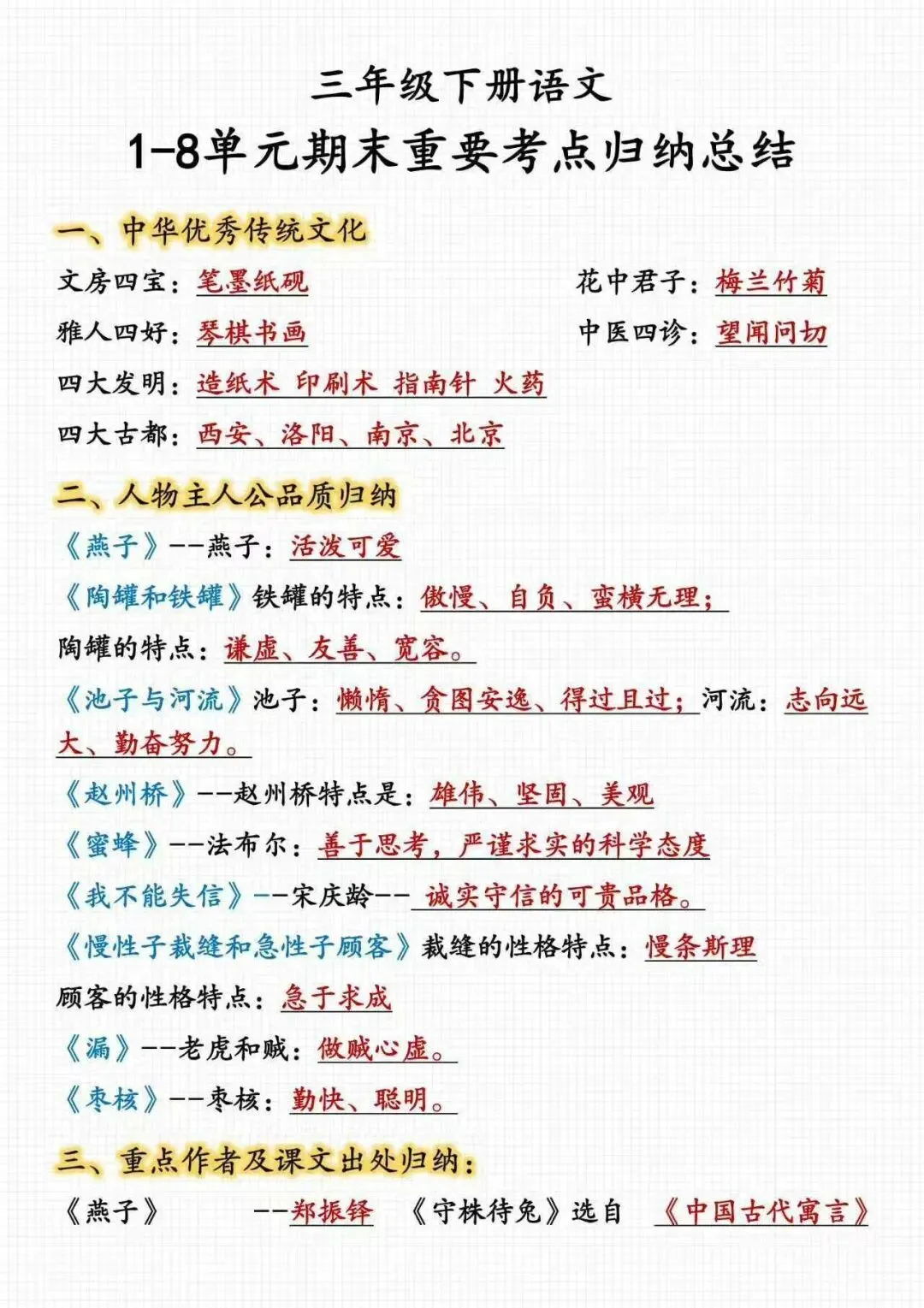 闲鱼收藏家:2026春三年级下册语文期末复习重点考点总结PDF高清可打印版免费领取