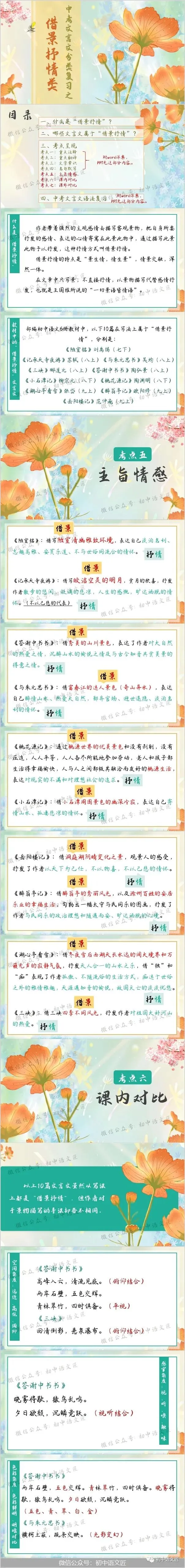 今天给大家带来的是不加班的肉松老师制作的原创作品《“借景抒情”类文言文分类整合复习》。