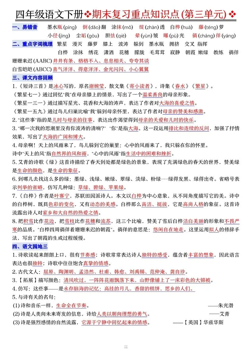【2026最新合集版】《最新语文期末复习重点知识汇总》1-6年级下册免费分享下载,关注我们可免费获取【最新学期课程预习及复习知识点归纳】高清可打印电子版。