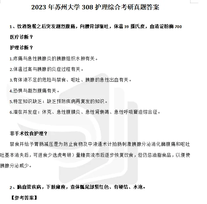 2010-2023年苏州大学308护理综合考研真题参考答案