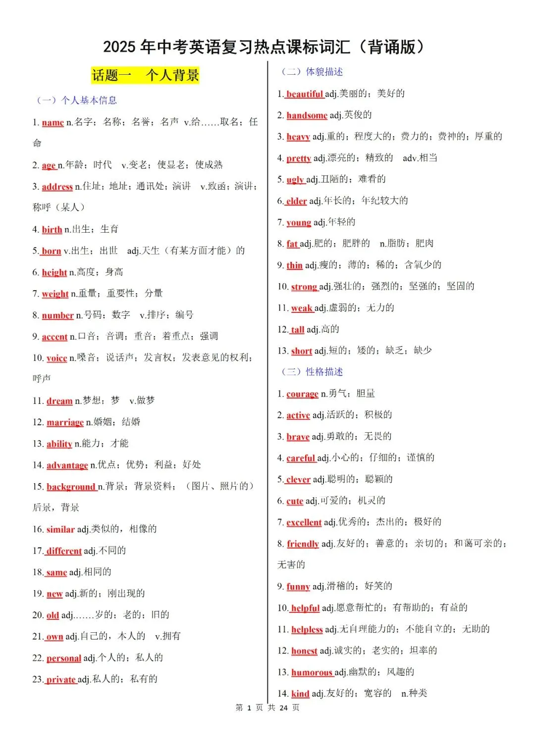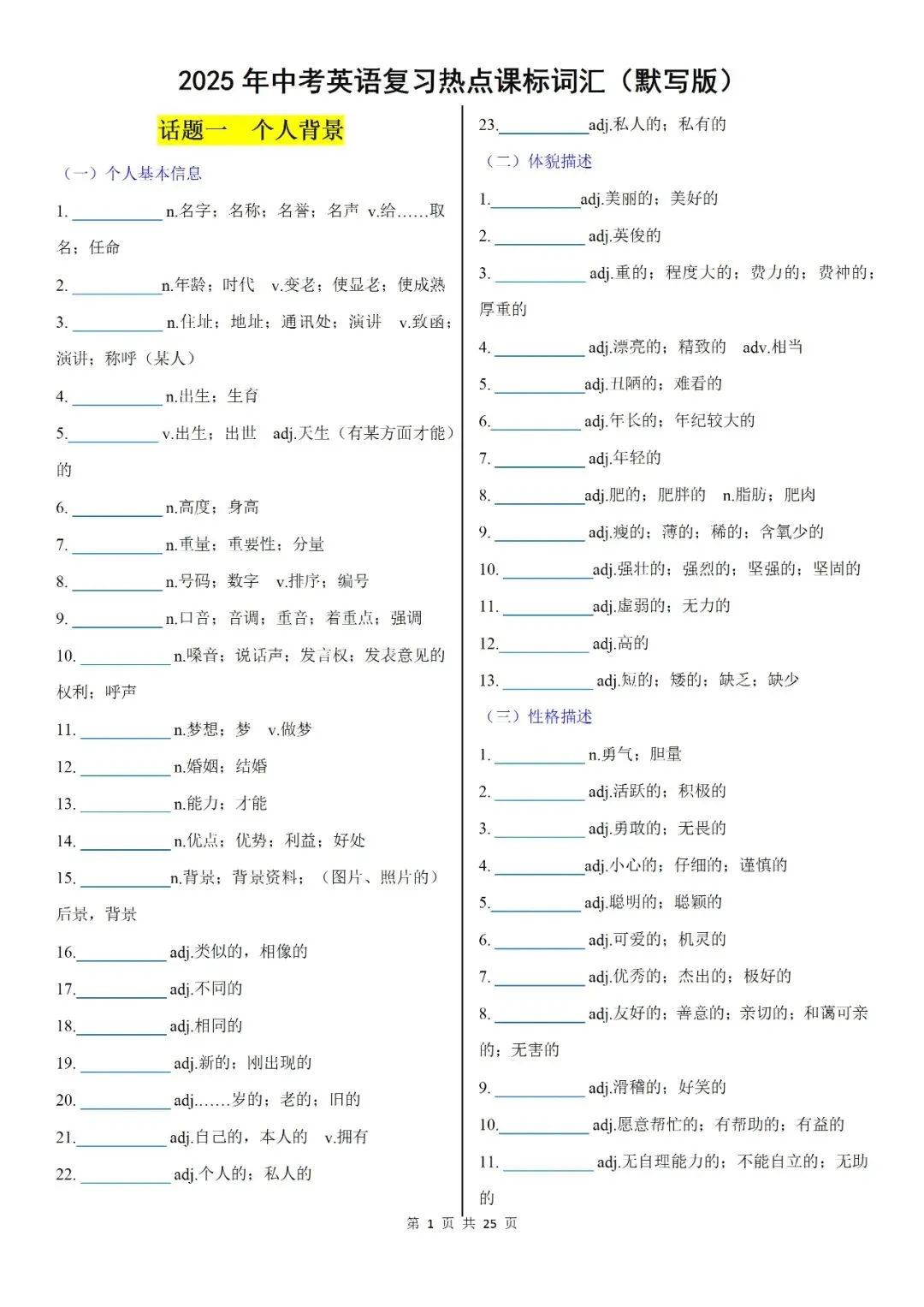 >2026中考英语复习热点课标词汇(背诵版+默写版),英语学习必不可少的!