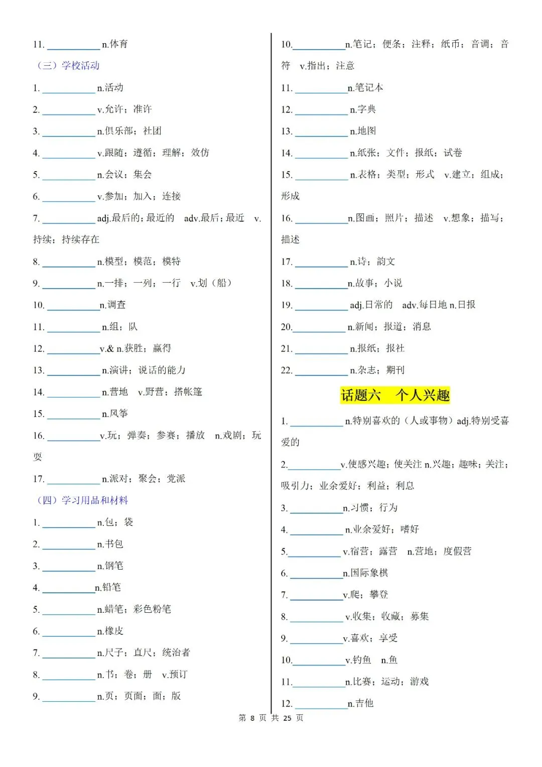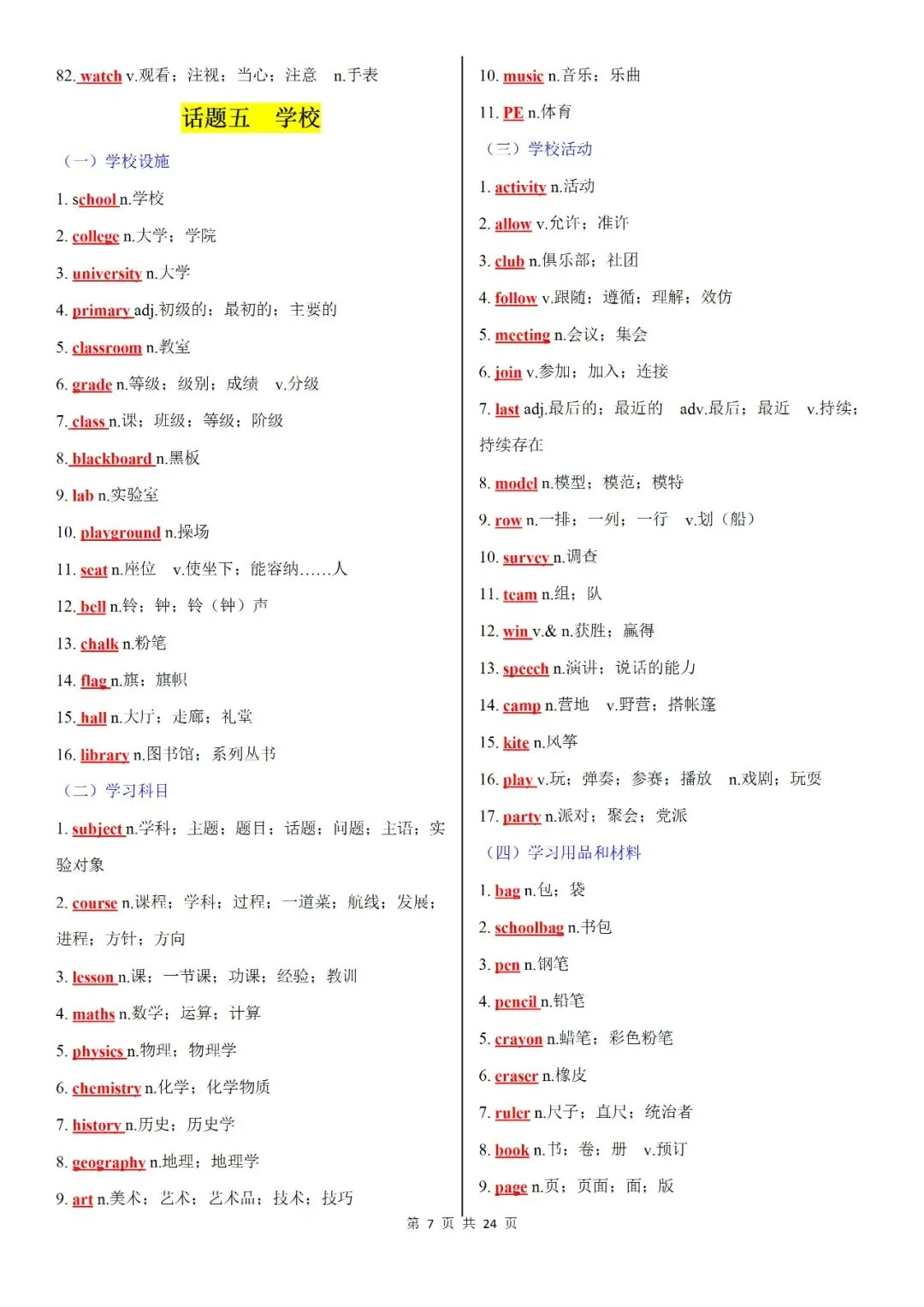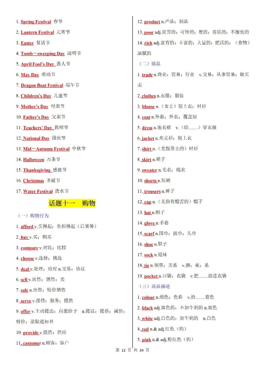 初中词汇