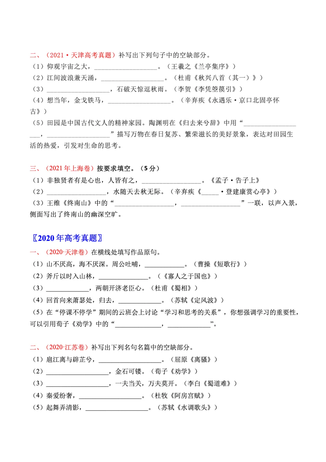名句默写(直接式)(全国通用)