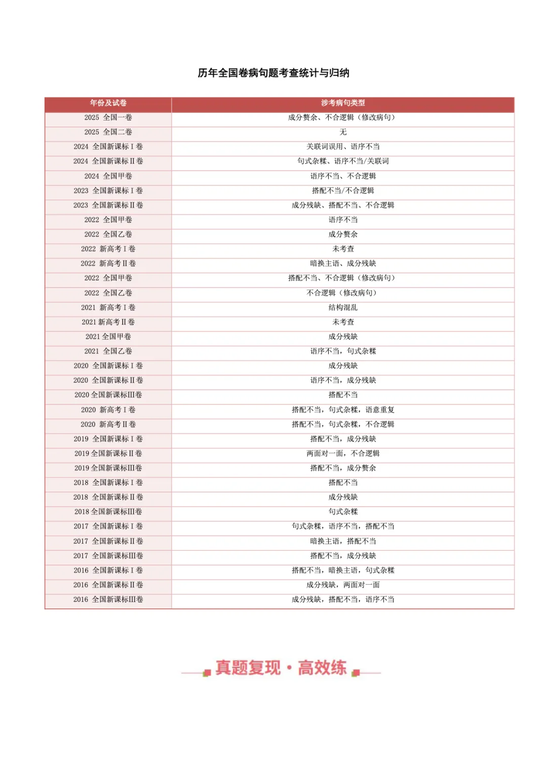 今天整理这份高考语文近十年真题资料,不是简单的试题堆砌,而是帮大家把零散的考点、易错的题型梳理通透,让每一次刷题都能直击痛点,把每一个漏洞都彻底补齐。愿所有高三学子都能沉下心,找准方向、精准发力,在六月考场从容落笔,在八月收获属于自己的理想录取通知书,不负日夜拼搏,不负青春韶华。