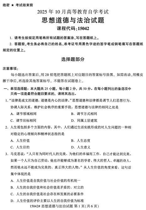宝子们好,今天给大家分享的自考15042《思想道德与法治》专业科目的复习资料,主要包括重要考点笔记知识点还有往年真题答案等,正在备考这门课程的宝子不要错过哦,下面就一起来看看具体的内容吧。