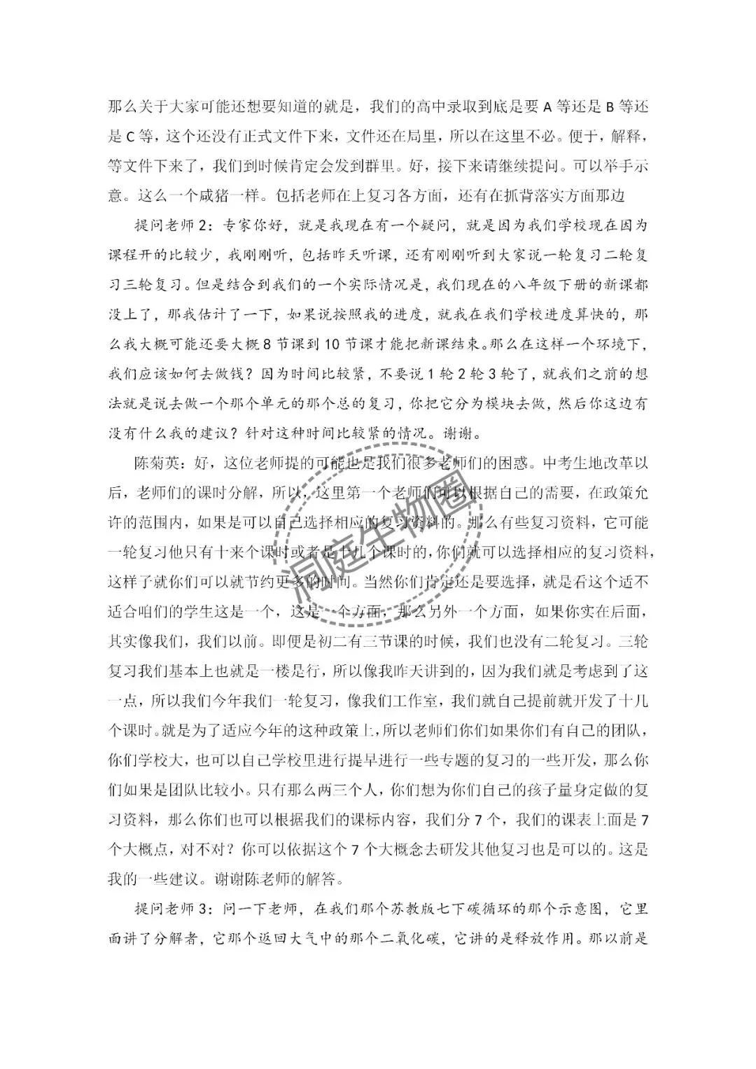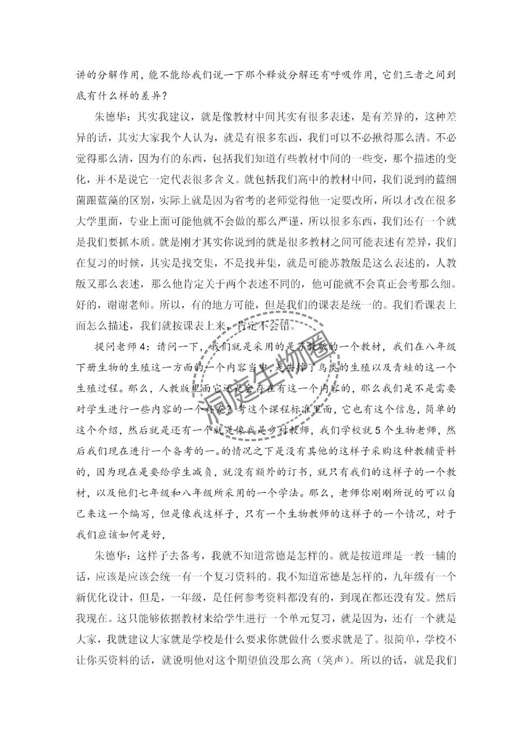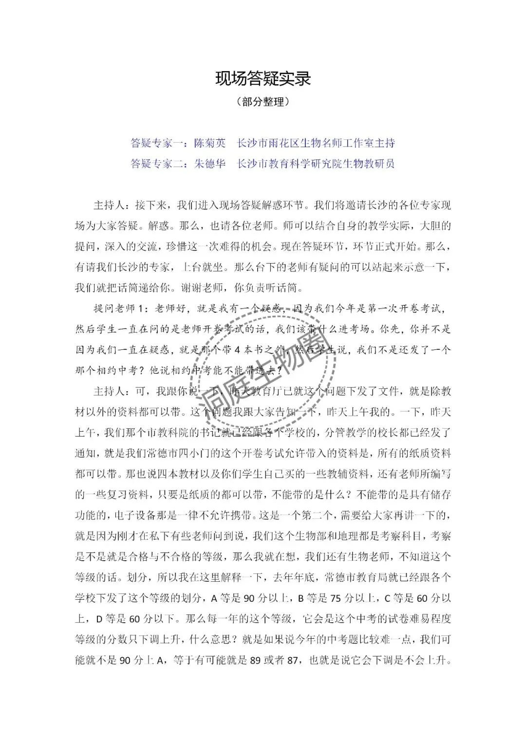 本次分享内容是《落实活动 优化评价 发展素养-初中生物学“教-学-评”一致性的思考与建议》,由长沙市教科院生物教研员朱德华主讲,朱教授从多个维度深度分析了新课标,剖析了如何适应新课标下的开卷考试,涵盖组织教学和复习迎考等,对初中生物教学有很大的指导意义。最后还附上了针对中考复习的现场答疑实录。