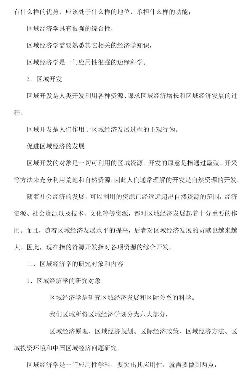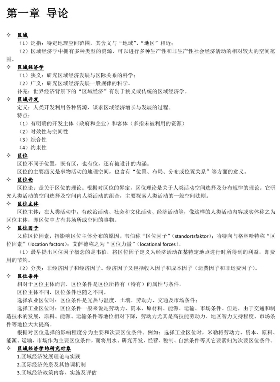孙久文区域经济学教程考试重点整理