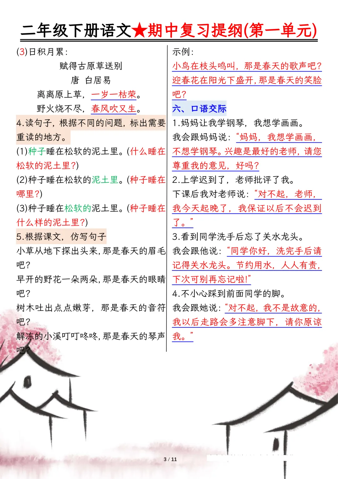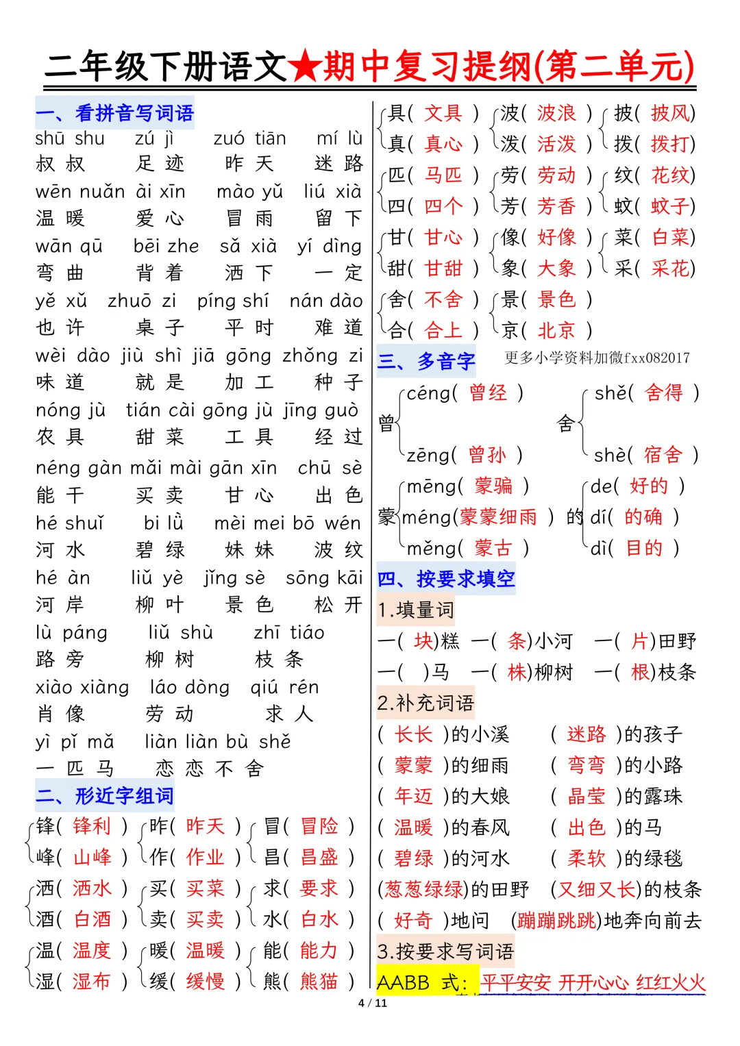 📚2026 春二年级下册语文期中备考神器来啦!《期中复习提纲高频考点梳理清单》紧扣教材重点,考点全覆盖✨生字词、课文中心、句子仿写、日积月累全梳理,复习不盲目考前冲刺、查漏补缺超高效,基础分稳稳拿捏✅可打印直接背,二年级语文期中提分必备💯