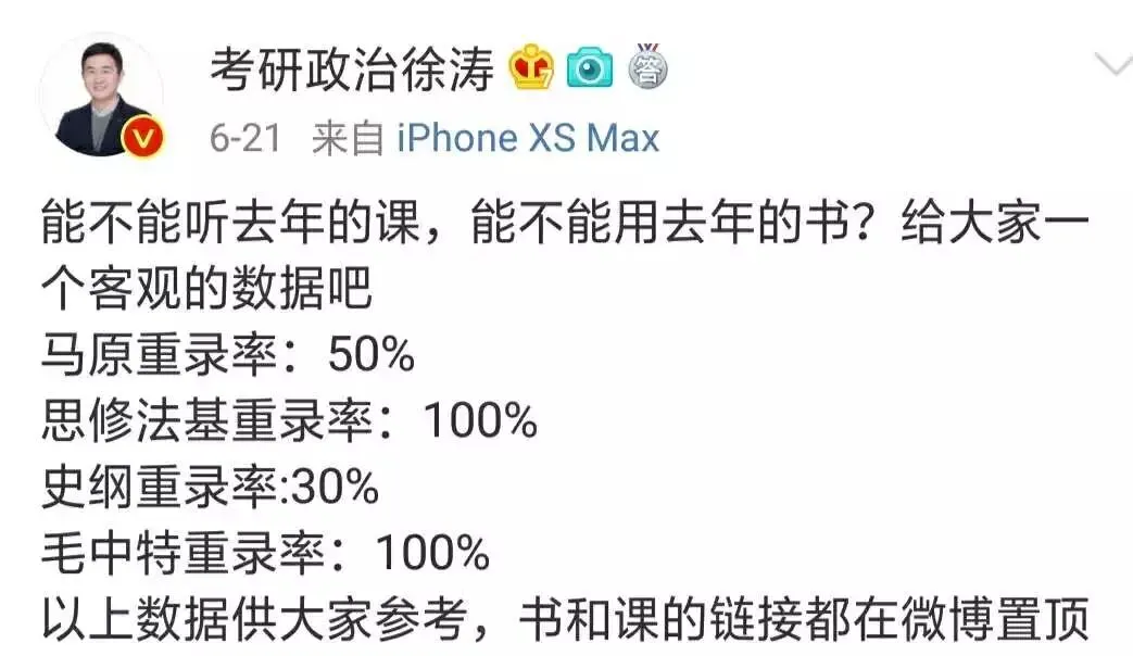 像徐涛老师就给了大家一个客观的数据,“马原重录率50%、思修法基重录率100%、史纲重录率30%、毛中特重录率100%”。他也说了,哪怕是有些模块的内容几乎全部重录,但里面有很多不一样的表述,有很多细节的变化,大家学习时也会更细致些。