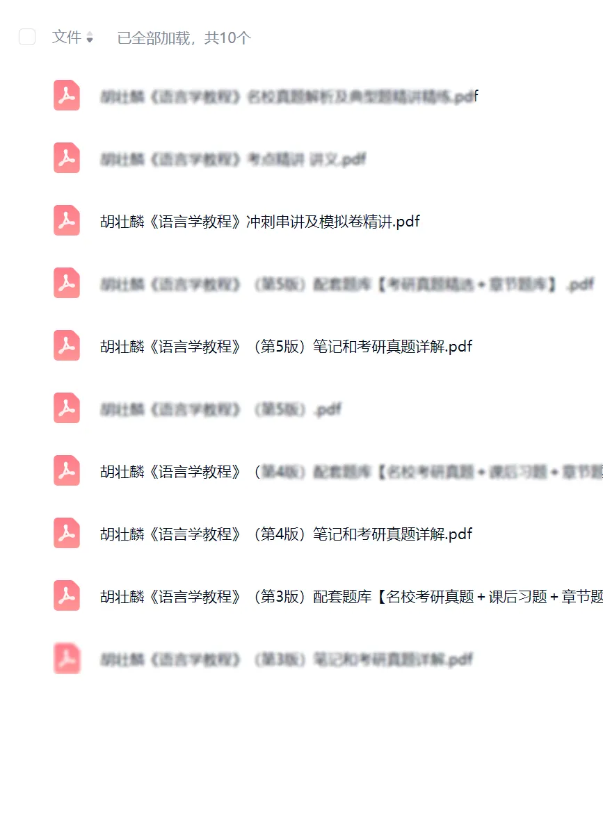 整理了胡壮麟的语言学教程第3/4/5版复习学习资料,主要包括: