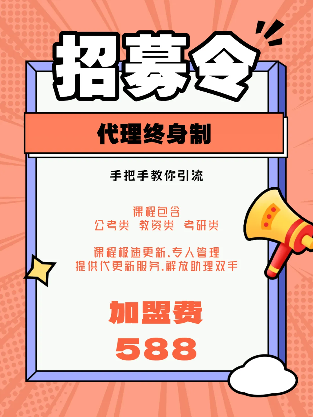 终身代理加盟费:588元