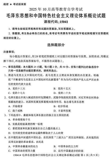 宝子们好,今天给大家分享的自考15041《毛概》专业科目的复习资料,主要包括重要考点笔记知识点还有往年真题答案等,正在备考这门课程的宝子不要错过哦,下面就一起来看看具体的内容吧。