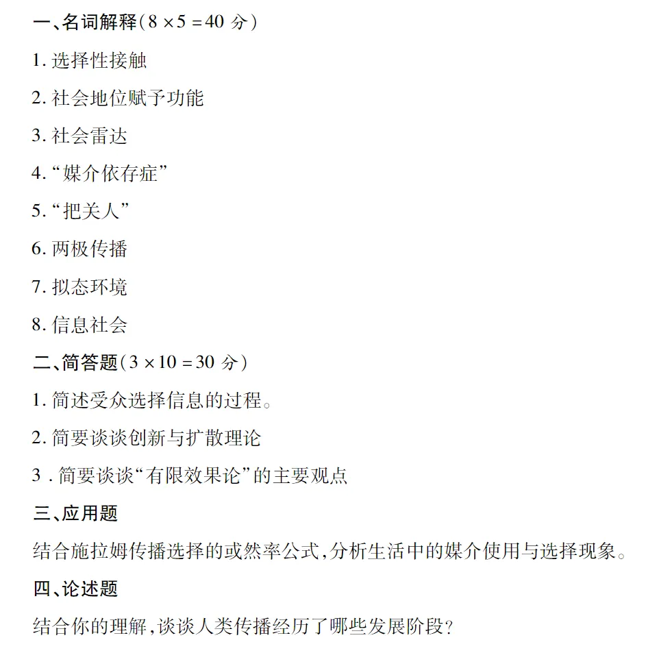 紧接着就是对基础内容进行自我考察,比如五种传播类型、传播效果研究,媒介组织及技术,这里建议同学们可根据5W模式进行不同章节的串联及学习,更不容易遗漏。