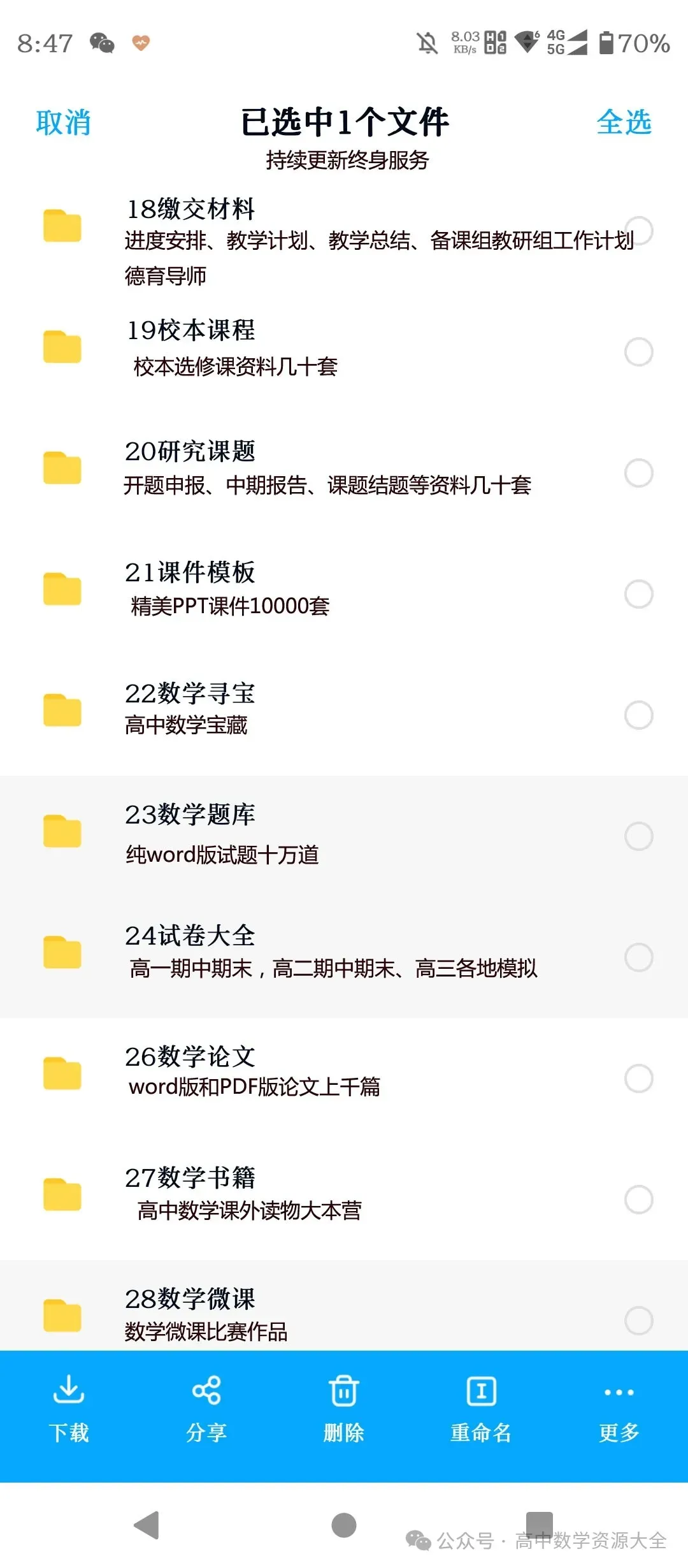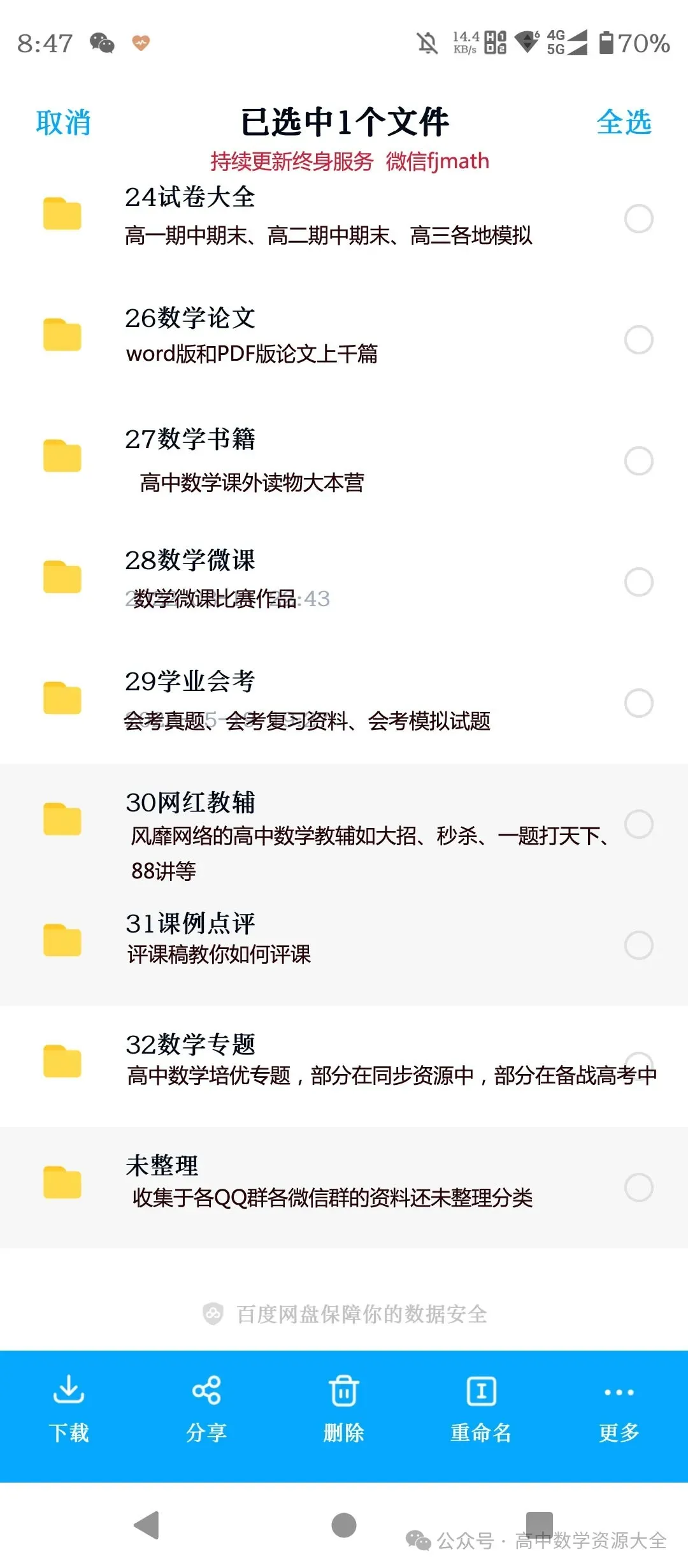 百度用户可以加微信fjmath申请加入百度网盘资源库,群里4000G资料自由下载,30类一线老师必备资源,文件自动更新,永久服务!