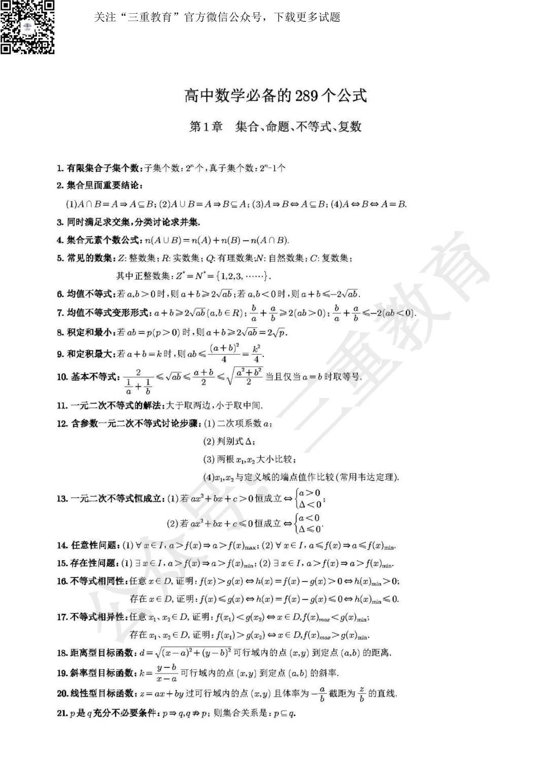 无论你是理科生还是文科生,高中数学公式都是基础知识的重中之重。今天帮大家