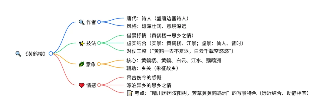 译文:傍晚我伫立在东皋放眼远望,徘徊不定不知该归依何方。层层树林都染上秋天的色彩,重重山岭披覆着落日的余光。牧人驱赶着牛群返还家园,猎人带着猎物驰过我的身旁。大家相对无言彼此互不相识,我长啸高歌真想隐居在山冈。赏析:全诗以白描绘秋日山野之景,“皆”“唯”二字强化秋景苍茫感。诗人借田园场景反衬隐居后的孤寂,“相顾无相识”道尽知音难觅的惆怅,末尾“采薇”暗合隐居之志,尽显隋末唐初文人仕途失意后的心境。昔人已乘黄鹤去,此地空余黄鹤楼。
