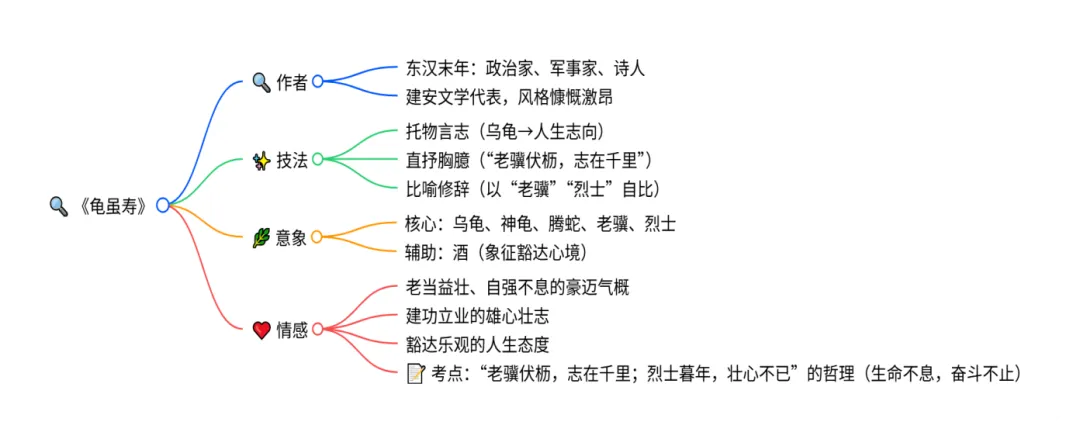 译文:我轻车简从前往边塞慰问,路途遥远越过居延属国。像蓬草飘出汉塞,又似归雁飞入胡人的天空。浩瀚沙漠中烽烟笔直升起,黄河之上落日浑圆壮丽。到萧关时遇见侦察骑兵,得知主帅正在燕然前线指挥。赏析:这是首纪行诗,“征蓬”“归雁”喻诗人身世,暗含失意。颈联“大漠孤烟直,长河落日圆”堪称千古名句,以精准用字勾勒雄浑边塞图景,尽显“诗中有画”的特色,将孤寂情绪融入壮阔风光,也藏着对边塞将士的敬意。译文:乘船远行,路过荆门一带,来到楚国故地。青山随着平原的出现渐渐消失,江水奔涌着流入辽阔荒原。江面月影如天上飞来的明镜,空中云霞构成奇幻的海市蜃楼。我依然喜爱这故乡的江水,它载着我的行舟万里不息送我远行。赏析:全诗是李白出蜀远游之作。“随”“入”二字化静为动,展现空间转换的壮阔。诗中既写楚地风光的雄奇,又以拟人手法写故乡水“送行”,将对山水的赞叹与故土眷恋相融,尽显少年诗人的意气与柔情。译文:从孤山寺到贾公亭,湖水涨平堤岸,白云低垂贴近湖面。几处早出的黄莺争着栖在向阳的树上,谁家新来的燕子在啄衔春泥筑巢。纷繁的春花快要让人眼花缭乱,浅浅的青草刚好没过马蹄。最喜爱湖东的美景,漫步在白沙堤上,久久不愿离去。赏析:诗人以游踪为线,细致描摹西湖早春景致。“争”“啄”二字赋予莺燕生机,“渐欲”“才能”精准捕捉花草生长态势。全诗语言清新,满是对早春的喜爱,也藏着诗人官场失意后寄情山水的恬淡心境。译文:庭院里长着一株珍奇的树,满树绿叶衬托着繁盛的花朵,显得格外繁茂美好。我攀着树枝摘下一朵花,想把它赠送给远方思念的人。花香充盈了我的衣袖,可路途遥远,这花终究没法送到思念之人手中。这花虽美丽,又有什么用呢?不过徒增思念罢了。赏析:诗以庭中奇树起兴,借折花寄远的细节,层层递进抒相思之苦。“馨香盈怀袖”写花香,实则衬情意浓烈,而“路远莫致之”转折出离别无奈。语言质朴,将思妇的细腻情感藏于日常动作中,真切动人。译文:神龟虽长寿,终究会死亡;腾蛇能乘雾,最终也会化为土灰。年老的千里马虽卧在马槽旁,志向却仍是驰骋千里;有志之士即便到了晚年,壮志雄心也不会消退。人的寿命长短,不只是由上天决定;调养身心,就能延年益寿。趁这大好时光,我要抒发心中的豪情壮志。赏析:全诗突破生死宿命论,以神龟、老骥等意象对比,凸显壮志不灭。“老骥伏枥,志在千里”成为千古励志名句。曹操以慷慨笔触,既承认生命有限,又强调精神意志的力量,尽显政治家的进取精神,契合建安文学风格。译文:高山上的松树,挺立在险峻的悬崖峭壁之间。风声呼啸,猛烈地吹打着它,松枝却依然坚劲挺拔。冰霜严酷寒冷,将天地间的万物都摧残殆尽。可松树依旧保持着青翠的本色,毫不衰败。难道是松树本性就善于抵御严寒吗?其实是它有着坚贞不屈的品格,从不会轻易改变自己的本性。赏析:这首诗以松柏为核心意象,是一首借物咏志的佳作。开篇勾勒“亭亭山上松,瑟瑟谷中风” 的画面,以高山险谷的环境衬托松柏的孤高,又用狂风的猛烈凸显其坚劲。中间两句 “冰霜正惨凄,终岁常端正”,将考验升级为严酷冰霜,万物凋零之际,松柏 “常端正” 的姿态,更显其不屈风骨。结尾以设问点题,“岂不罹凝寒?松柏有本性”,直接点出松柏的坚贞源于内在本性,而非外力勉强。全诗托物言志,将松柏的品性与人的坚贞气节相契合,既赞美了松柏的耐寒品格,也勉励从弟要坚守本心、不屈不挠,尽显魏晋文人的骨气与追求。译文:天下各地气候不同,千里之内的风雨也大相径庭。边疆海边的百姓生活何等艰难,只能将身家性命寄托在荒野草丛中。妻子儿女模样如同禽兽,只能依靠山林险阻躲避灾祸。简陋的柴门内一片萧条,狐狸兔子竟在屋旁自在穿行。赏析:全诗以白描手法写边海百姓的苦难生活。从宏观环境到具体生活,层层递进展现民生疾苦。“狐狸翔我宇”的细节极具冲击力,直白揭露社会动荡下底层百姓的悲惨境遇,满含诗人对百姓的深切同情。译文:我在人间聚居的地方筑屋而居,身旁却没有世俗车马往来的喧闹。若问我为何能做到这般超脱,只因心灵早已远离尘俗纷扰,身处闹市也如居于幽静僻壤。我在东篱之下悠然采摘菊花,不经意间,庐山的身影便映入眼帘。傍晚时分山间的景致格外美好,雾气缭绕,成群的飞鸟相伴着归向山林。这其中蕴含着人生的真正意趣,我正想细细辨识,却已然忘了该如何用言语将它诉说。赏析:这首诗是陶渊明田园诗的代表作,尽显其“采菊东篱下” 的隐逸情怀。诗歌开篇以 “结庐人境” 却 “无车马喧” 的反差,点出 “心远地自偏” 的核心,道出精神超脱方能摆脱世俗烦扰的真谛。“采菊东篱下,悠然见南山” 以白描绘出悠然画面,菊与山的意象,藏着诗人与自然相融的自在。后写山气、归鸟之景,进一步烘托出宁静氛围。结尾 “欲辨已忘言”,将对人生真义的体悟藏于无言中,既体现出自然之趣,也传递出诗人淡泊名利、沉醉田园的人生追求,是魏晋风骨与田园意境的完美融合。译文:长安沦陷国家破碎,只有山河依旧;春天到来,城中人烟稀少,草木长得十分繁茂。感伤国事,面对繁花竟忍不住落泪;亲人离散,听到鸟鸣反而更添离愁。战火已持续三个月,一封家书抵得上万两黄金。愁绪缠绕,频频搔头,白发越搔越短,几乎插不住