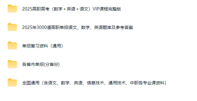 【单招考试资料】2025单招考试备考学习资料合集(语数英各科+各省份试题+复习资料等)