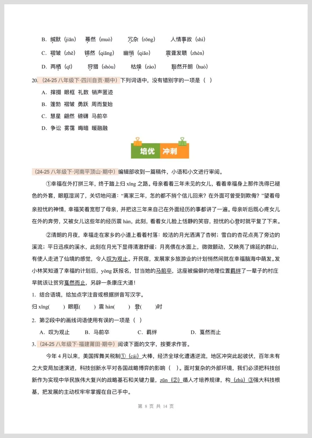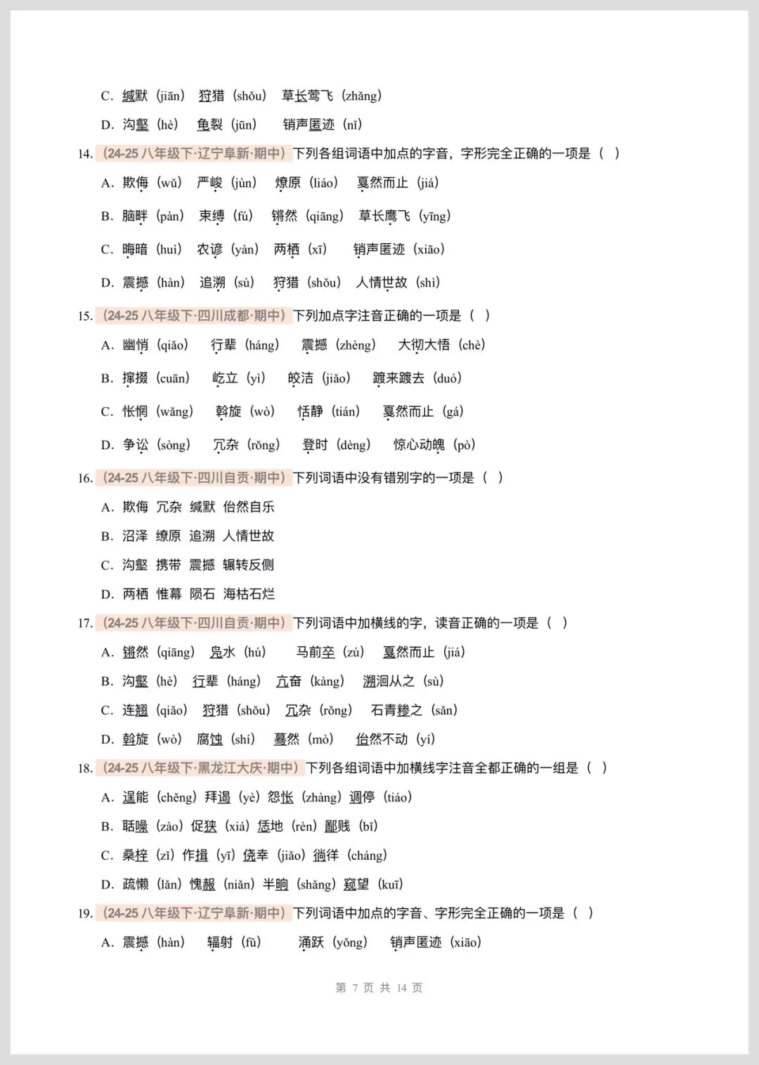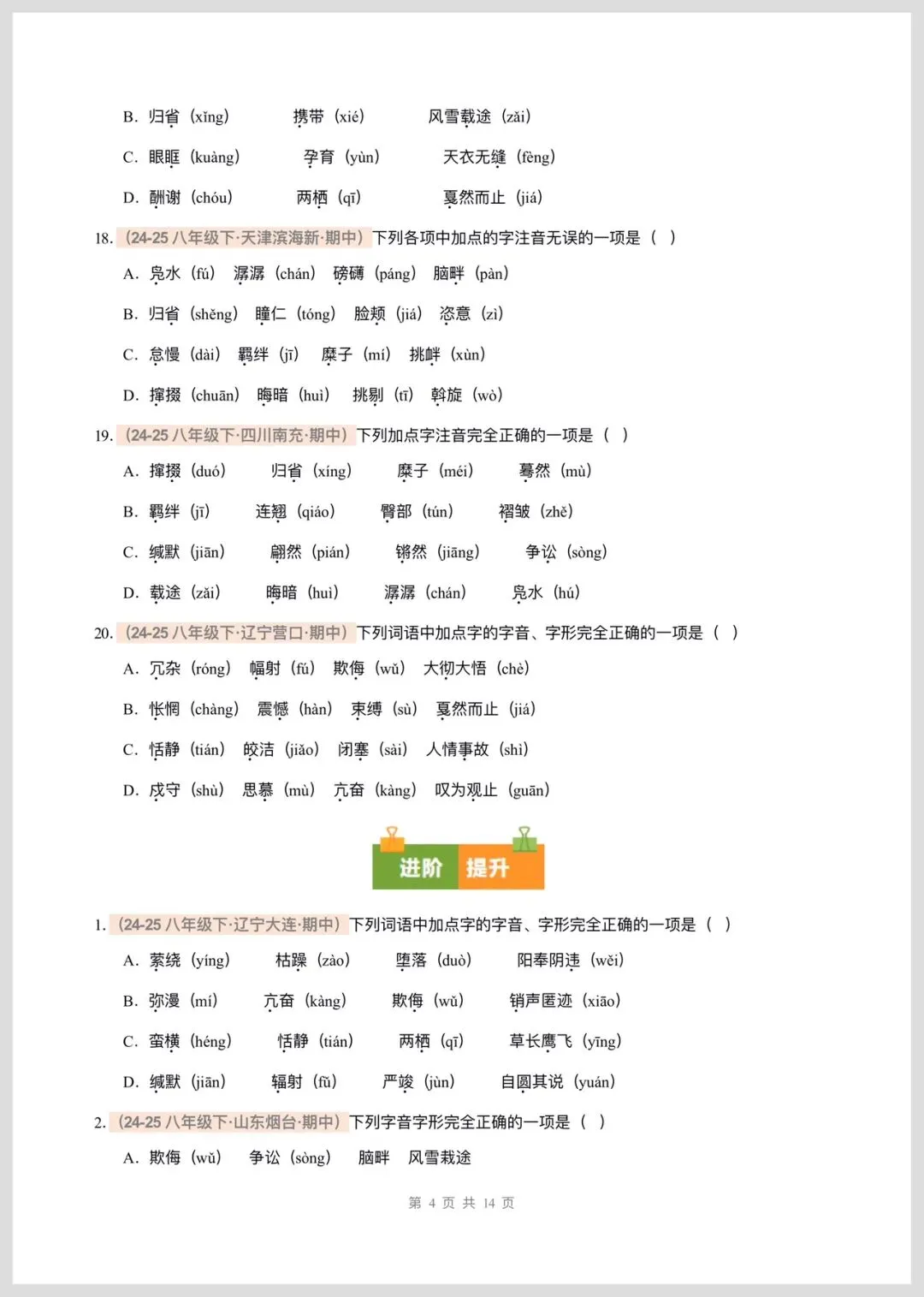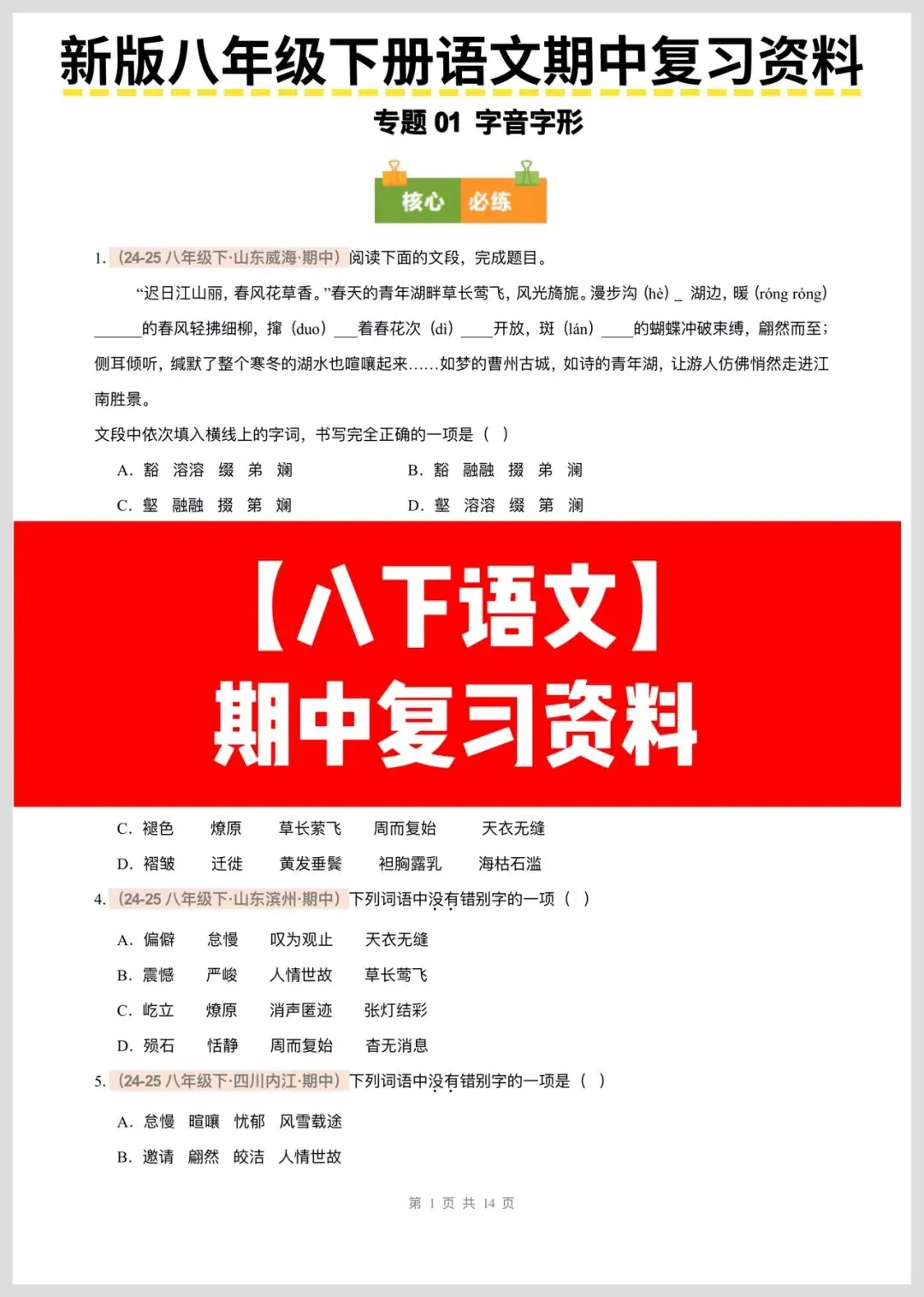 >新版八年级下册语文期中复习资料之字音字形专项练习(原卷版+解析版)完整版可打印!