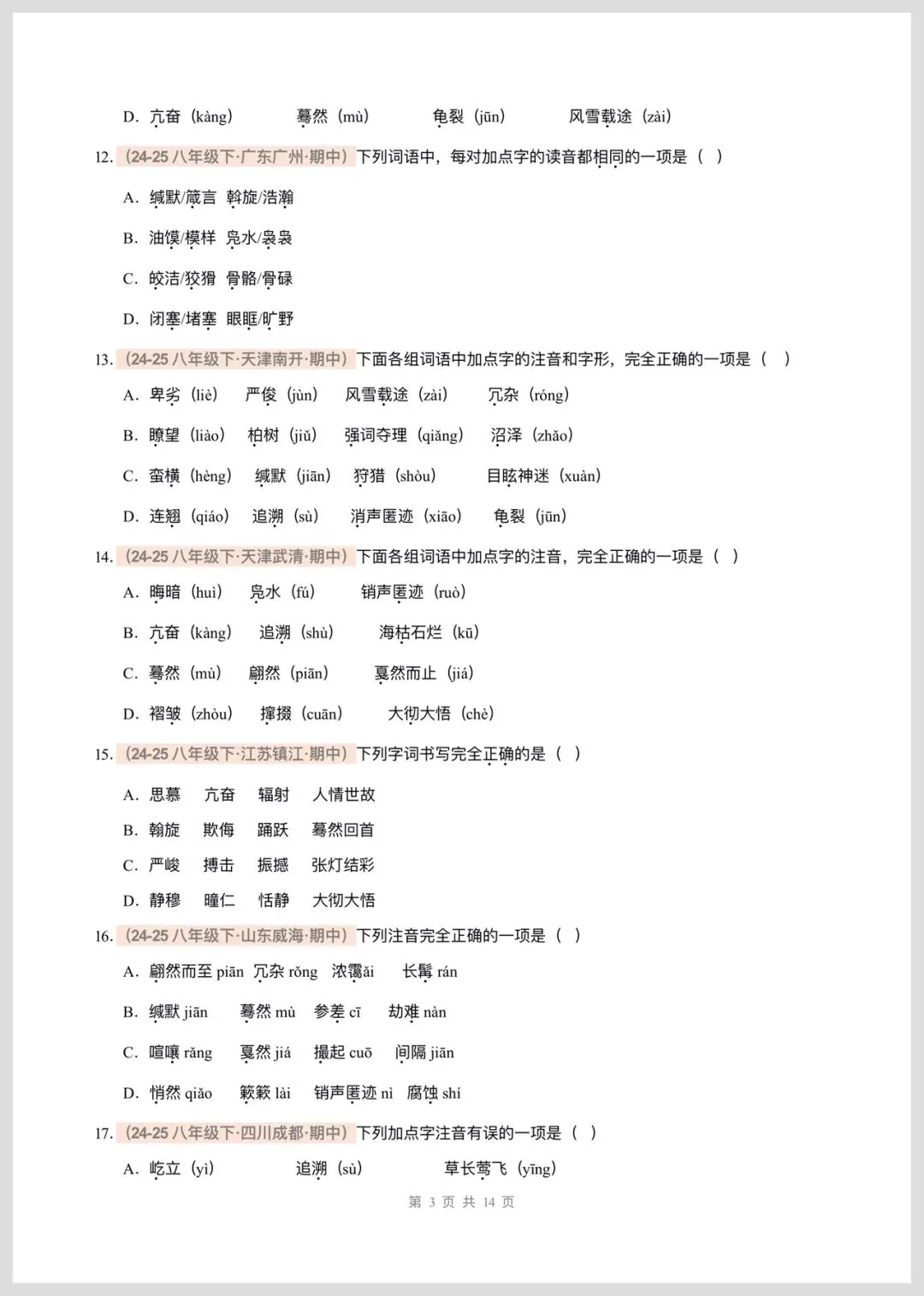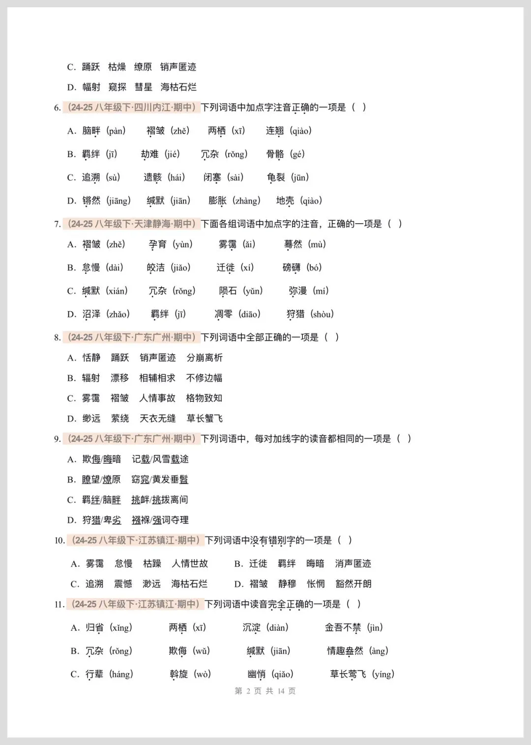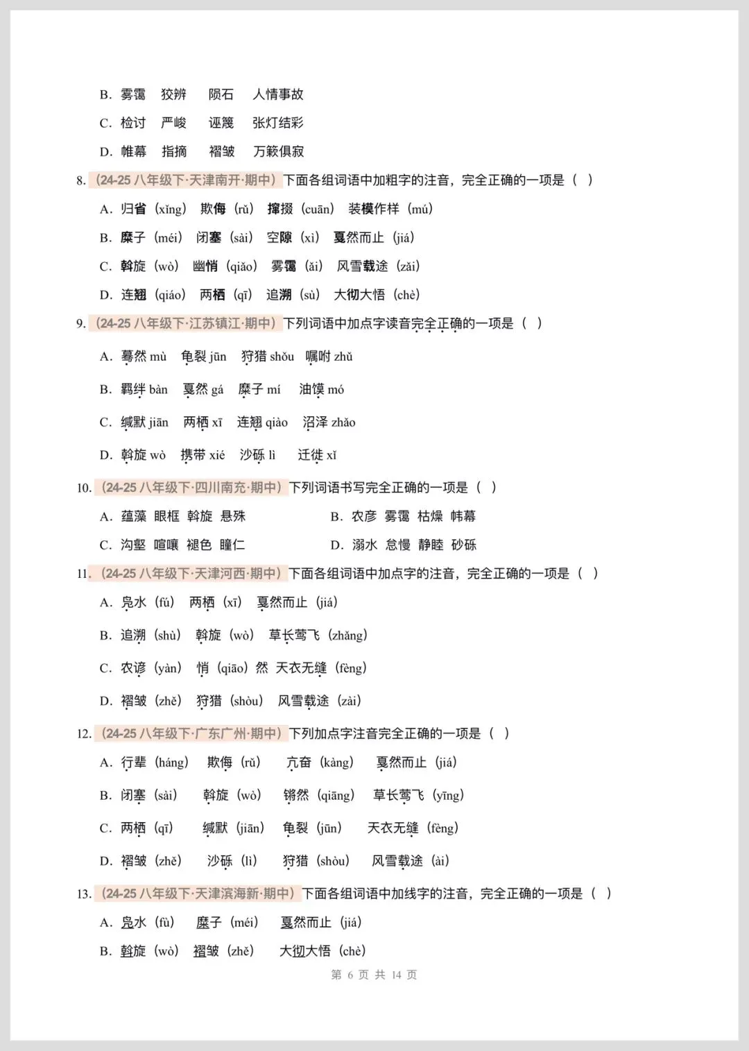新版八年级下册语文期中复习资料之字音字形专项练习(原卷版+解析版)完整版可打印!