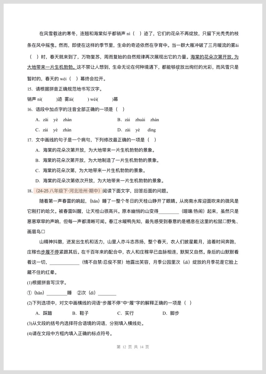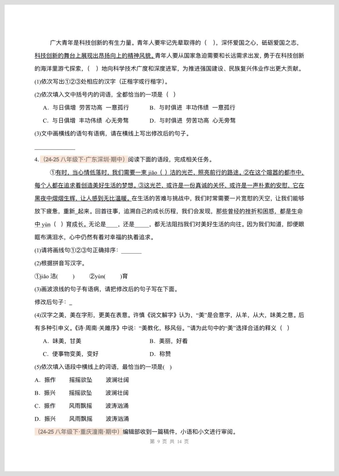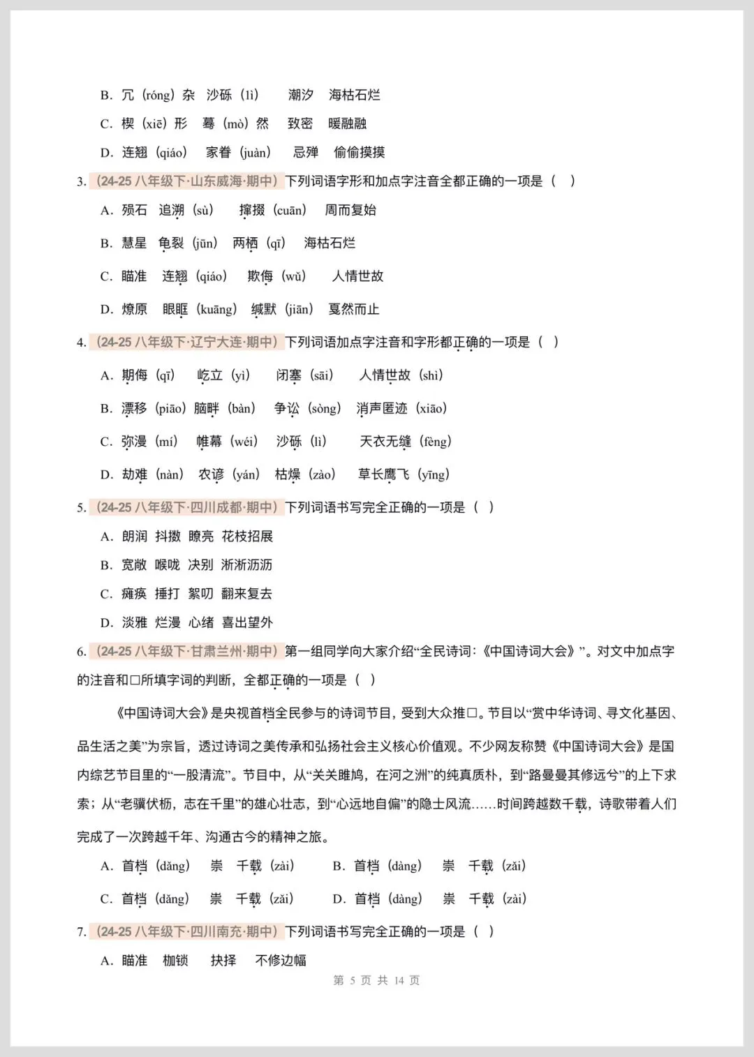 新版八年级下册语文期中复习资料之字音字形专项练习(原卷版+解析版)完整版可打印!