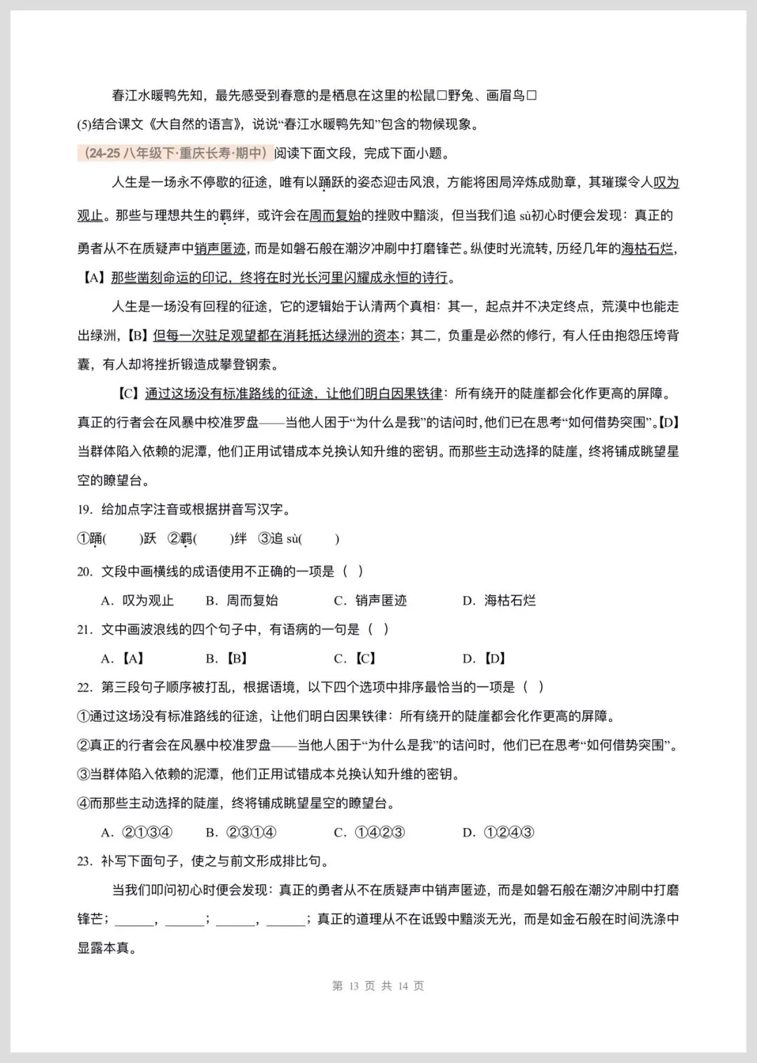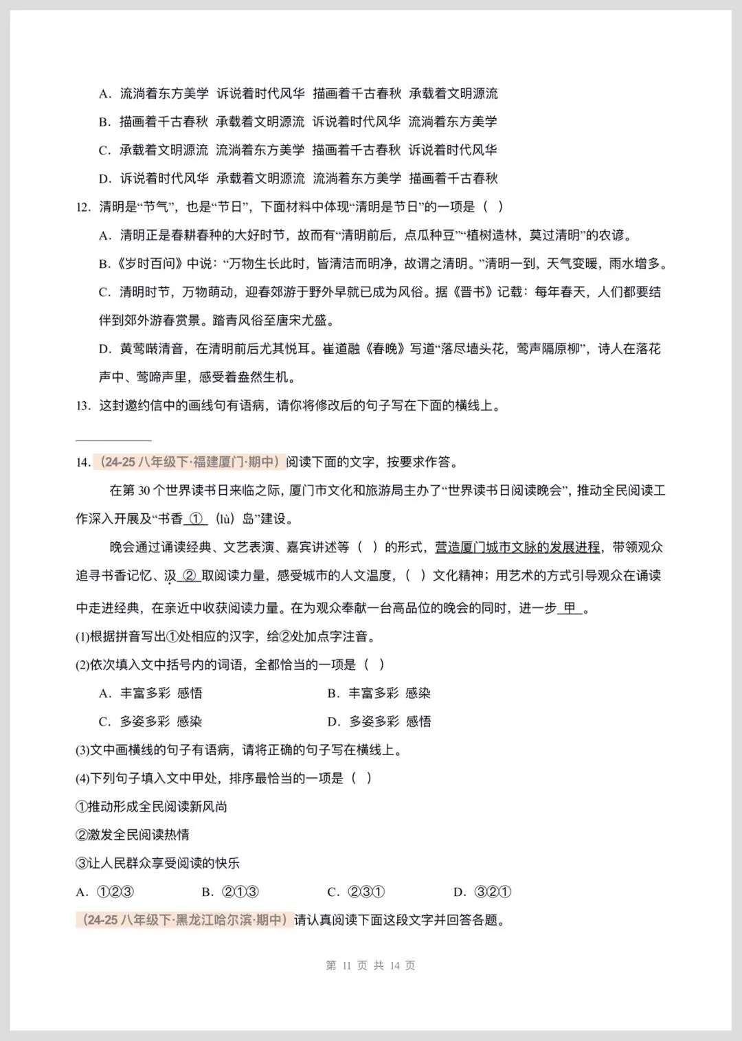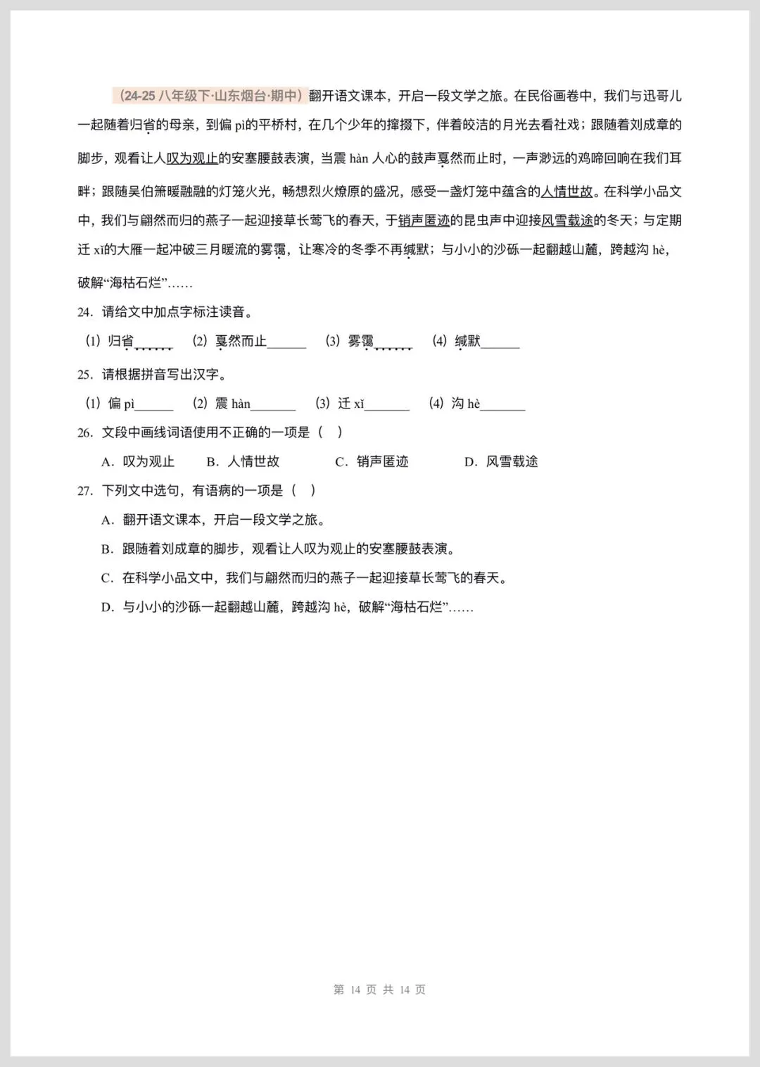 有救了!四下语文期中复习资料,精心设计,背诵默写、课文填空、易错读音易错字、园地词句段、口语交际,白得分老师原创制作
