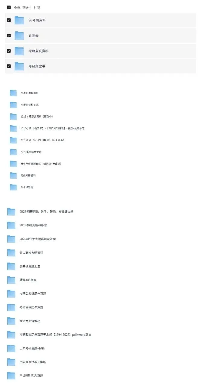 为了让大家少走弯路、高效备考,我特意整理了这份2026考研专属资料包,免费分享给每一位心怀梦想的考研人。资料不杂乱、不堆砌,全是经过筛选的实用内容,帮你把时间真正用在提分上。