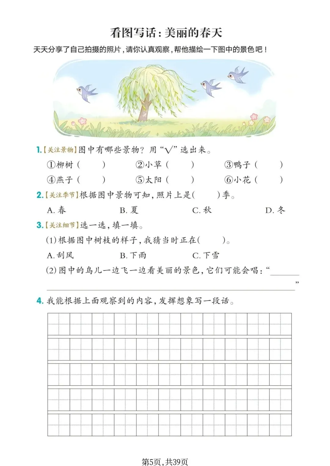 免费资料分享 | 一年级下册语文期中复习知识要点(电子版资料)