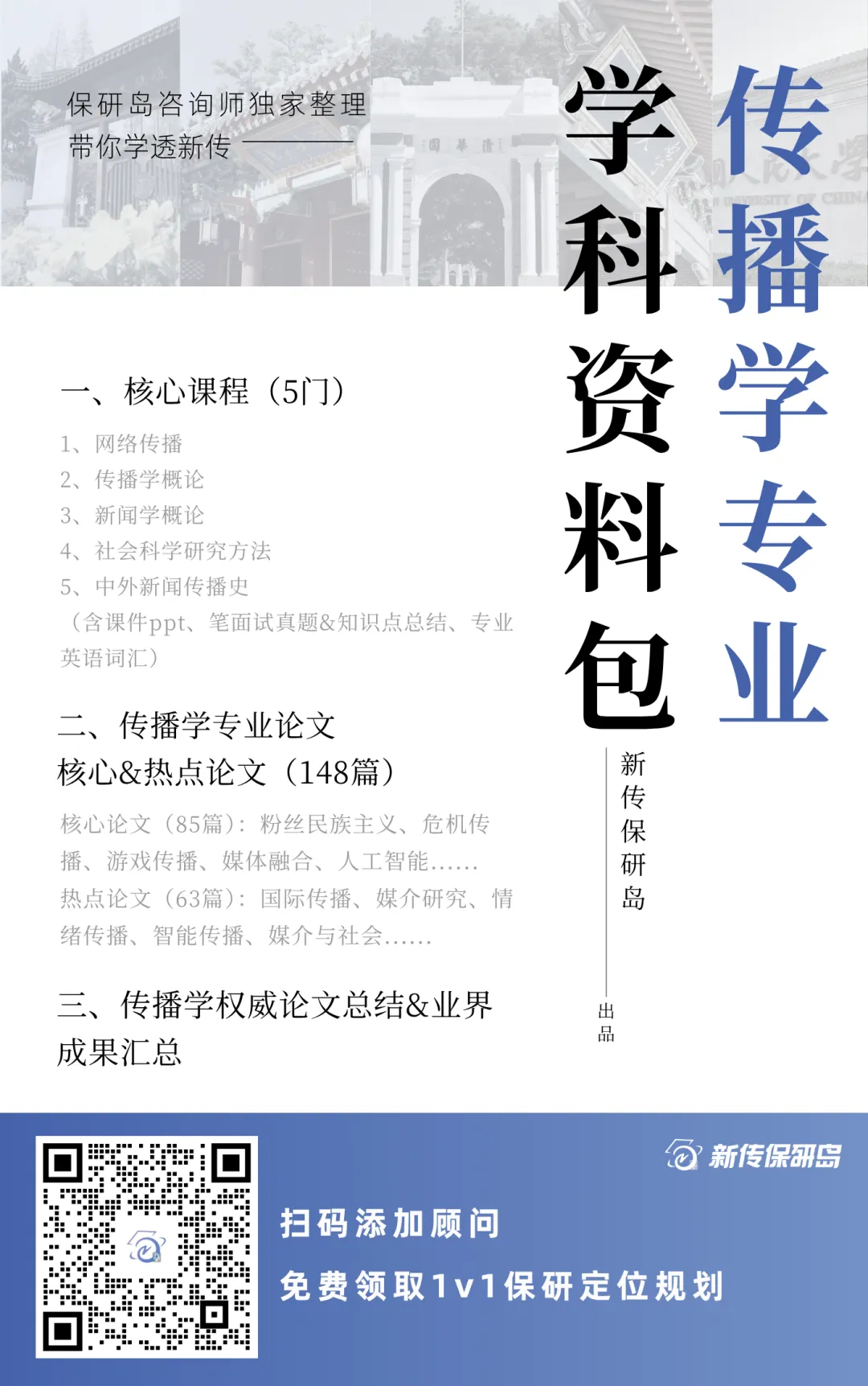 ✅ 方式三:社群助力📤 将活动海报转发至 1个新传保研(非保研岛)交流群或者新传学习相关交流群(每群≥100人)📸 保留5min后添加顾问微信领取资料!