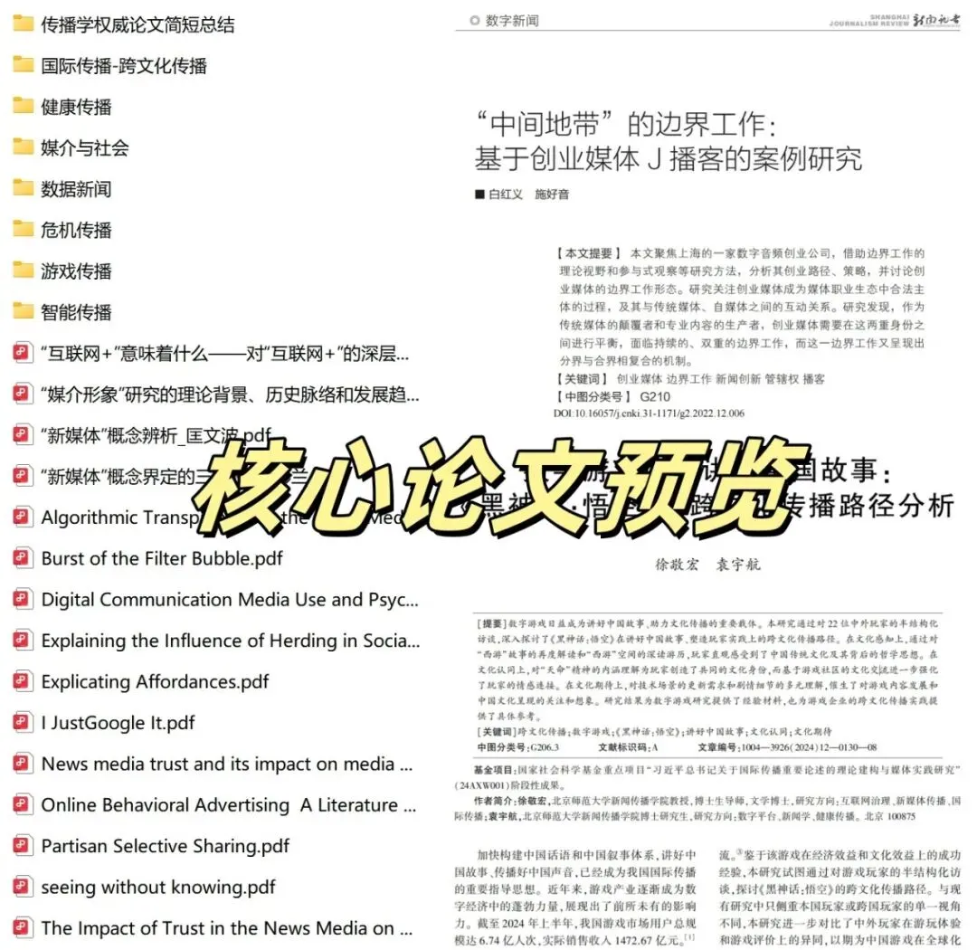 核心论文(85篇):粉丝民族主义、危机传播、游戏传播、媒体融合、人工智能......