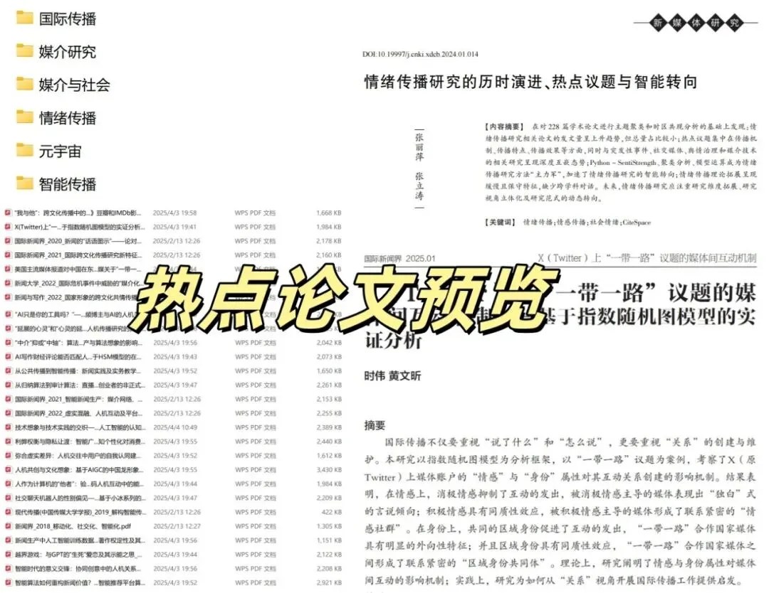 热点论文(63篇):国际传播、媒介研究、情绪传播、智能传播、媒介与社会......