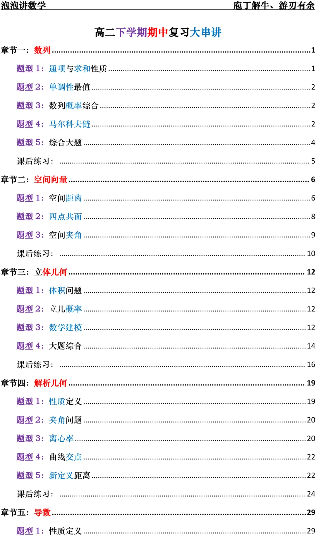你们要的期中培优复习资料来了:高二下学期期中复习大串讲