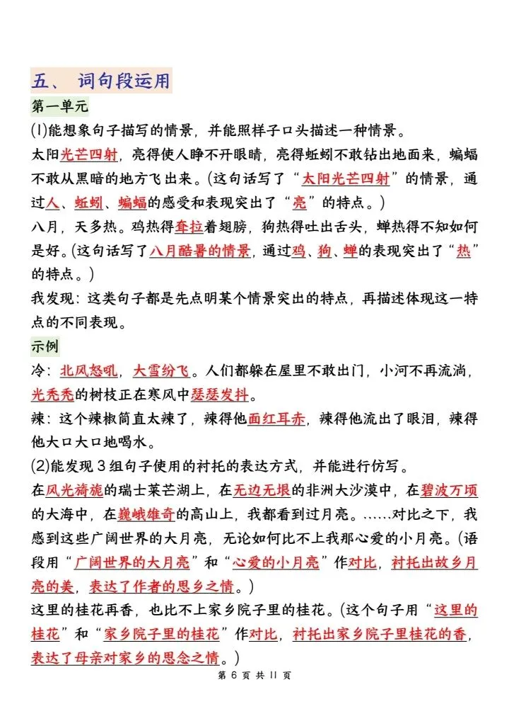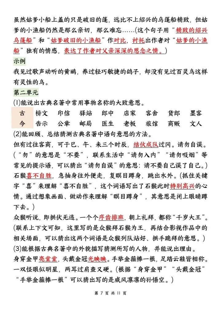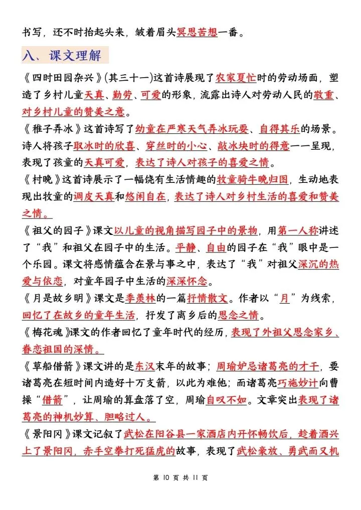 ✅ 课内知识:每单元课文中心思想、段落大意、重点课文阅读理解考点,吃透课本是关键