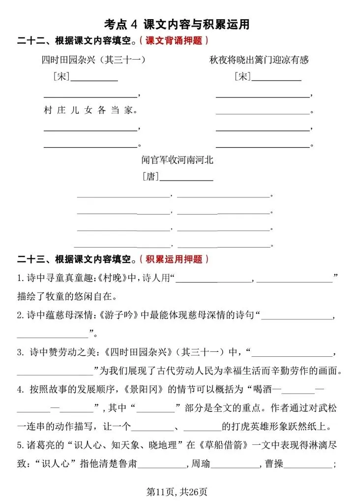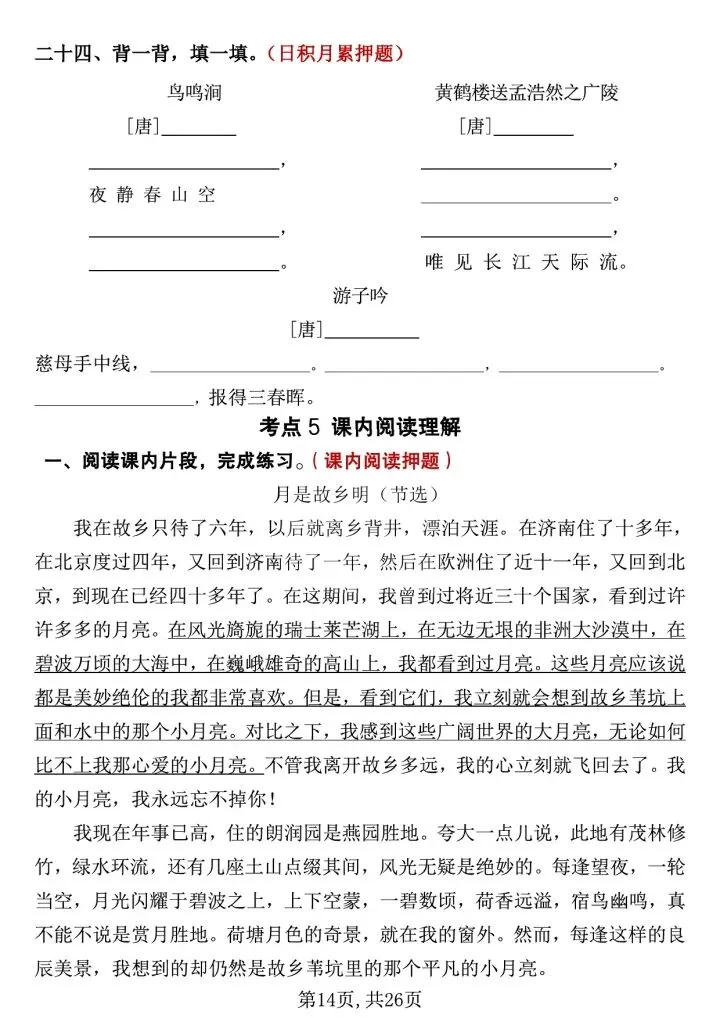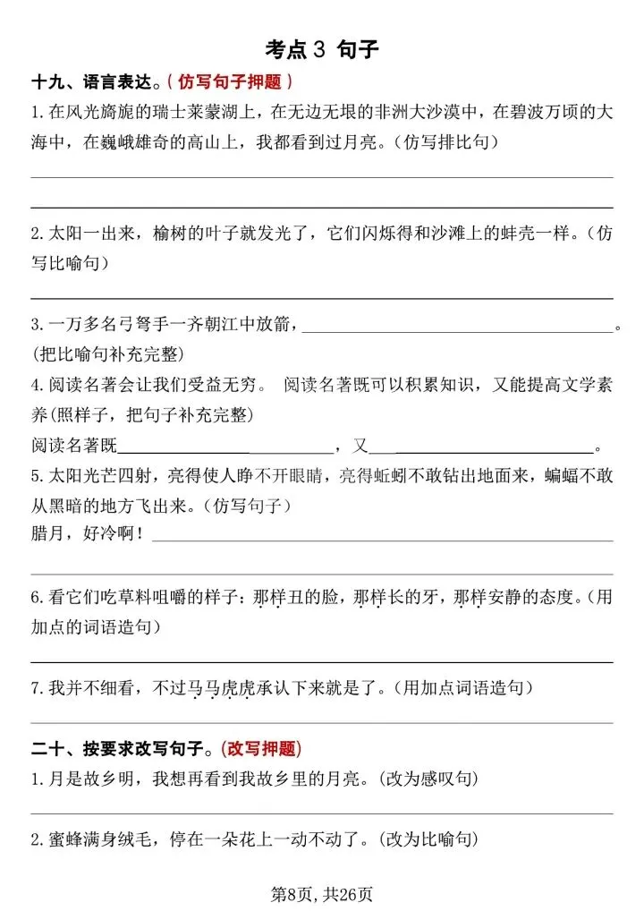 ✅ 句子专项:必背古诗、日积月累、重点句子仿写、修改病句、课文重点语句赏析,直击考试高频考点