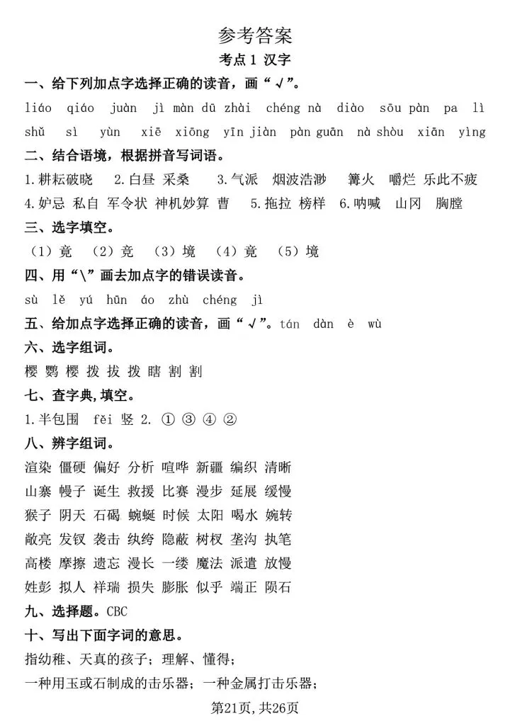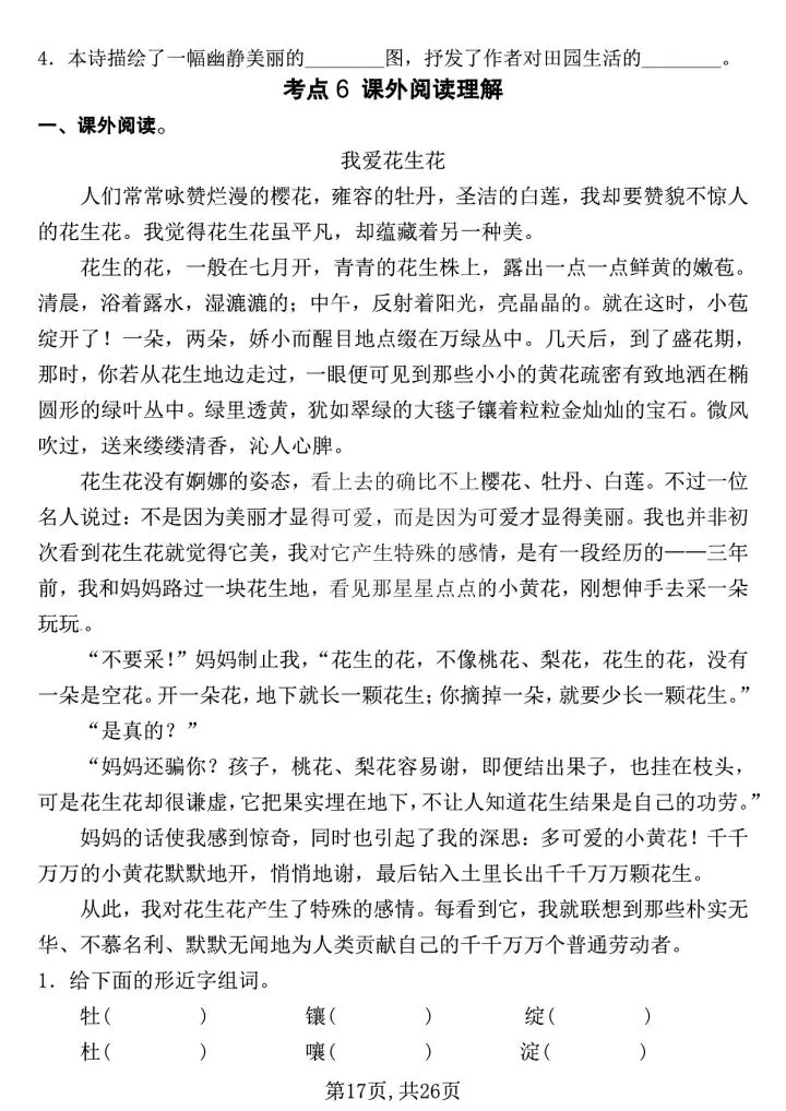 ✅ 专项押题:6大考点专项押题,包括字词、句子、课文内容及运用积累、课内阅读和课外阅读等
