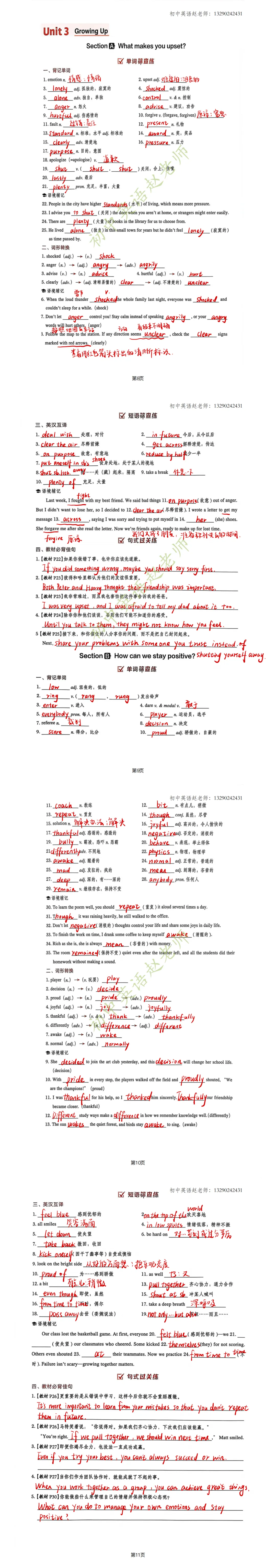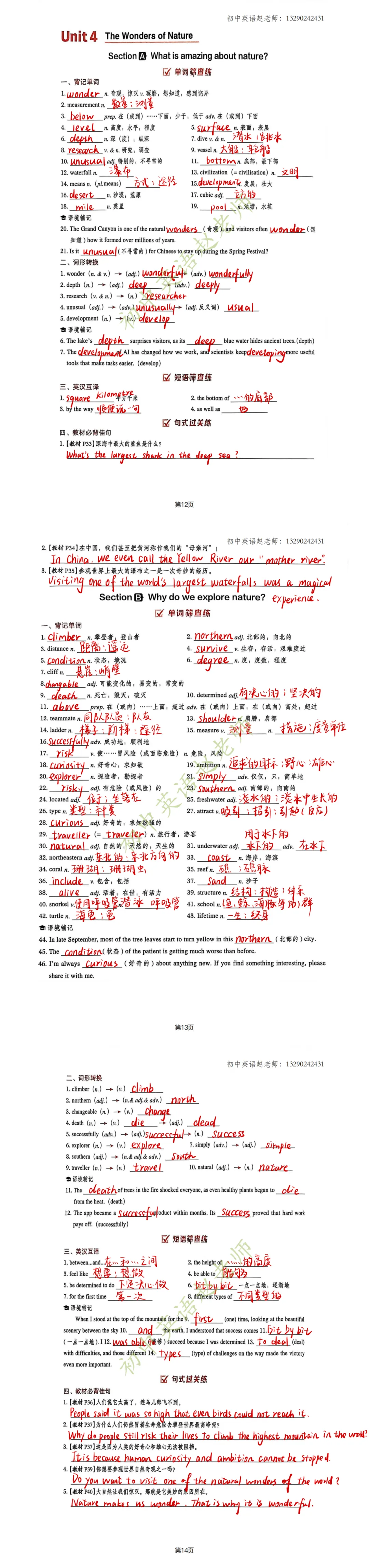 八年级下册英语基础知识涵盖面广,为帮助同学们巩固复习,含青老师准备了手写版基础复习资料,支持打印练习,欢迎使用。