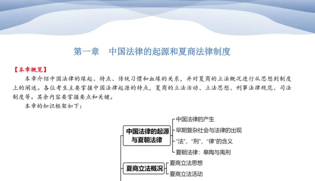 每章前边都设有知识框架统揽整章内容,考生滤清框架结构,进而再背诵细节内容,同时由于复习笔记强调知识点的理解,因而对于知识点介绍较充分,考生在背诵时可以摘取要点进行记忆,甚至在充分理解后用自己的语言来组织答案,这都是非常可行的。法律史背诵不是一板一眼的机械性记忆,不要字字较真,徒增负担,在要点记清的基础上能够大致复述即可。同时背诵也不是一蹴而就的,面对几百页的知识点更要有耐心、循序渐进,坚持规律性背诵,越到后期越能看到背诵效果,相信皇天不负有心人。