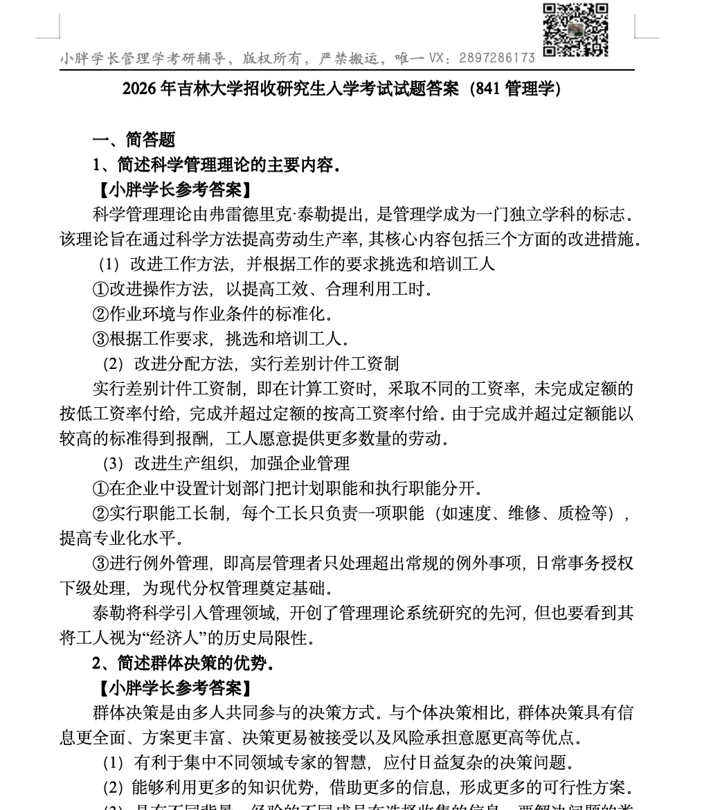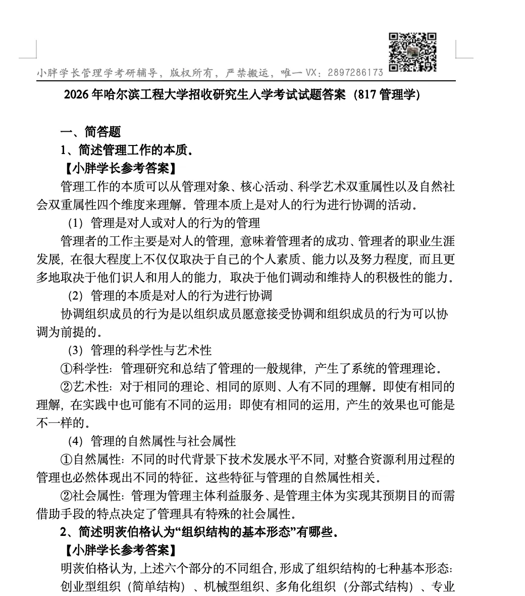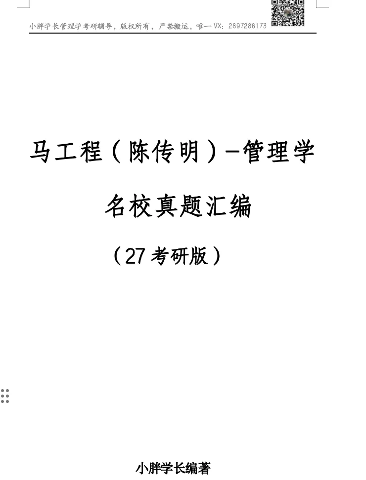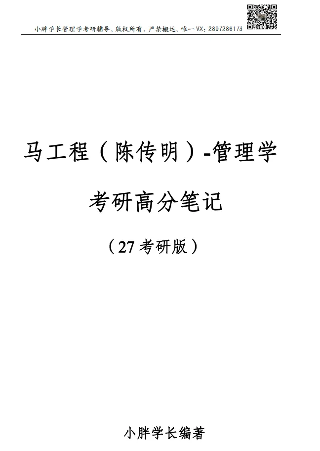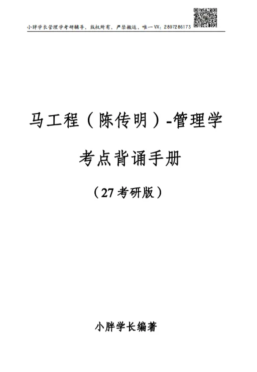马工程管理学高分笔记,150页左右,完美契合小胖学长27考研的“案例口诀版”马工程管理学精讲带背班。