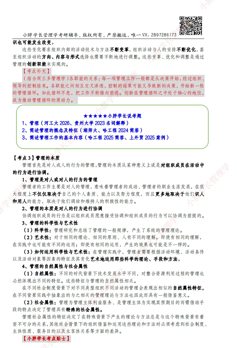 高分笔记彻底告别“全书乱背、盲目跟风”!笔记严格对标马工程《管理学》权威教材,逐章逐节拆解,剔除所有无关内容、冗余知识点,只保留考点、重点、易错点,精准踩中命题命脉!
