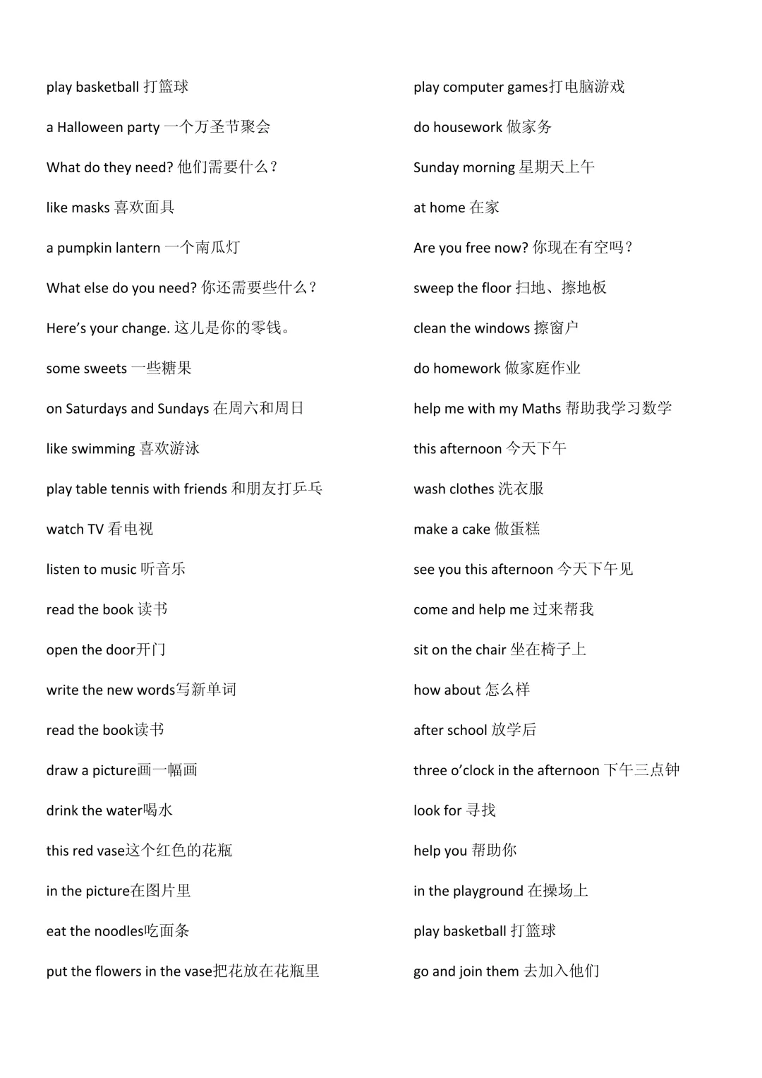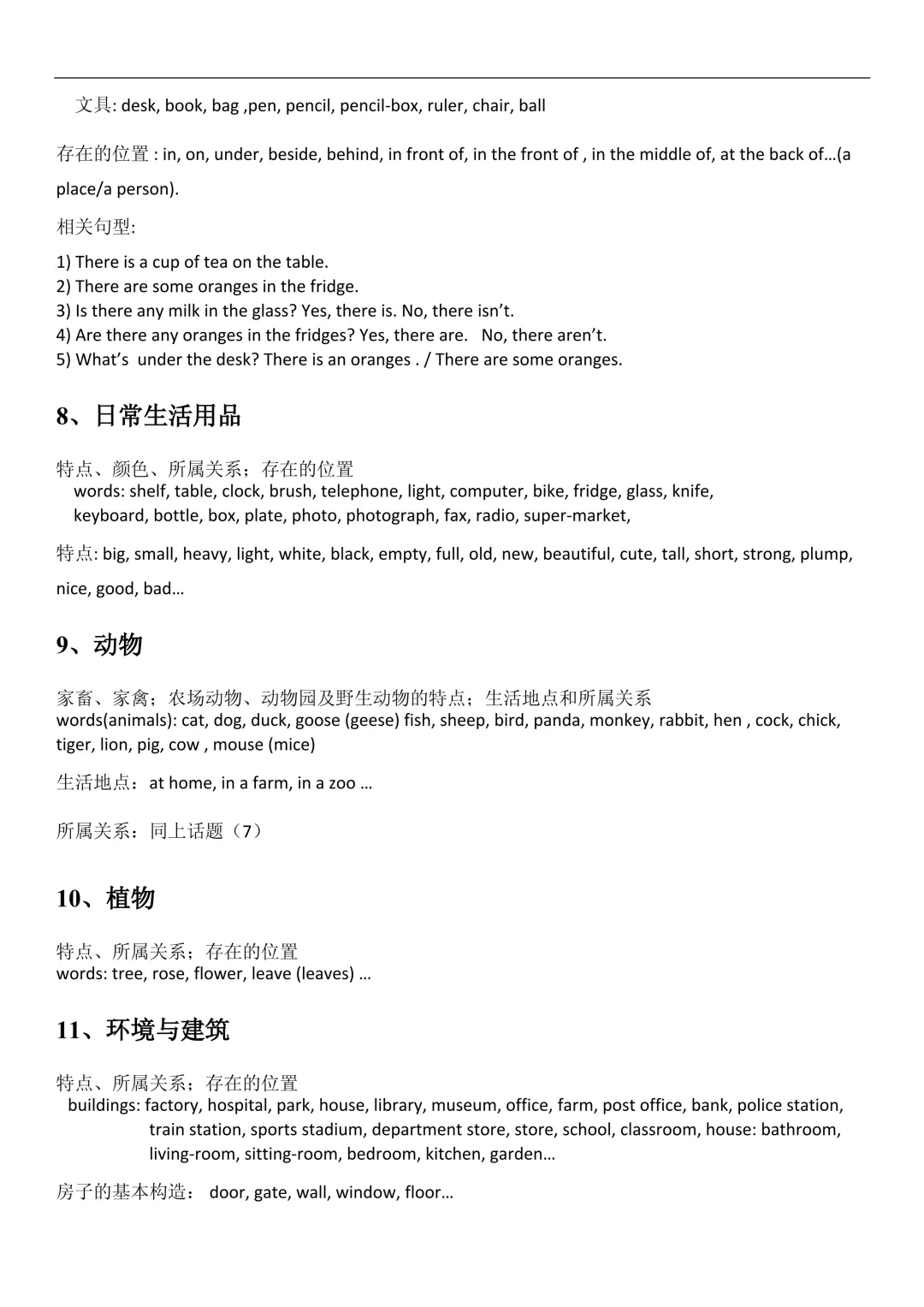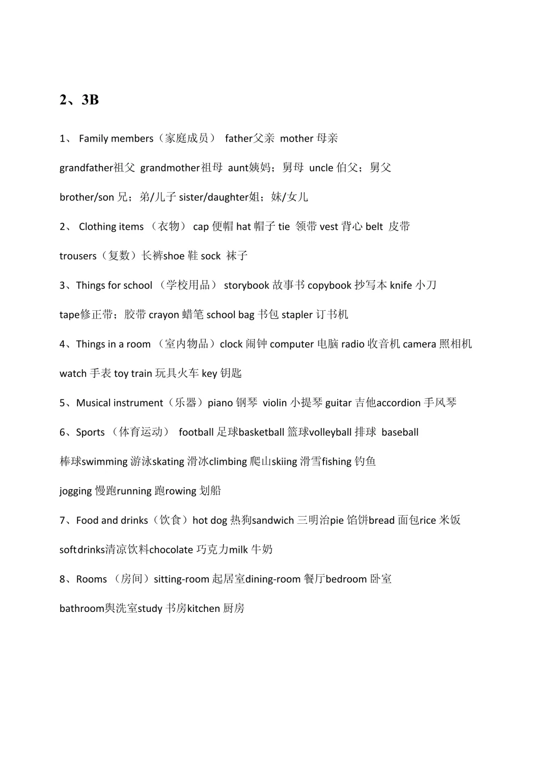 👨👩👧👦 家人:father, mother, grandfather, grandmother, brother, sister🏠 房间:bedroom, kitchen, study, bathroom, sitting-room⚽ 运动:football, basketball, swimming, skating, climbing, fishing