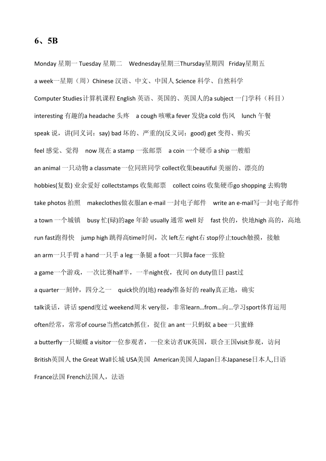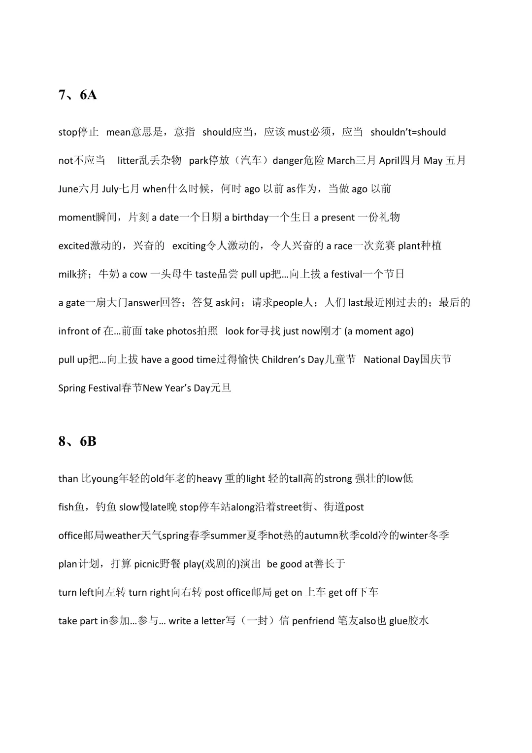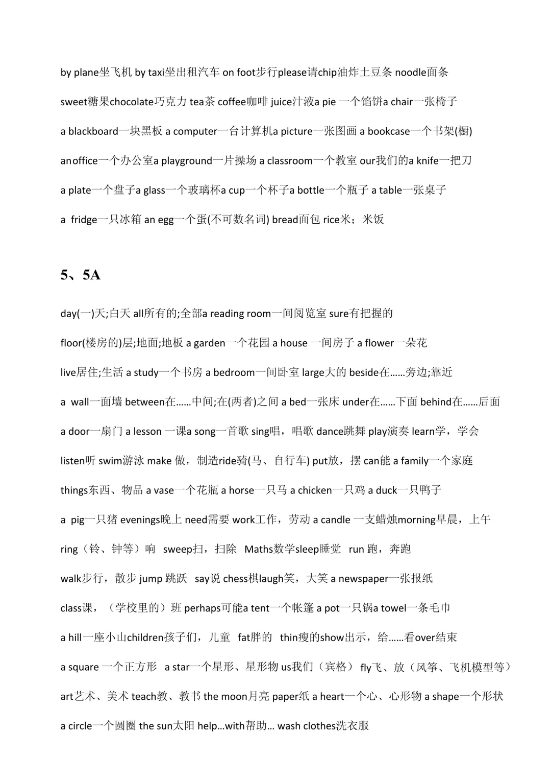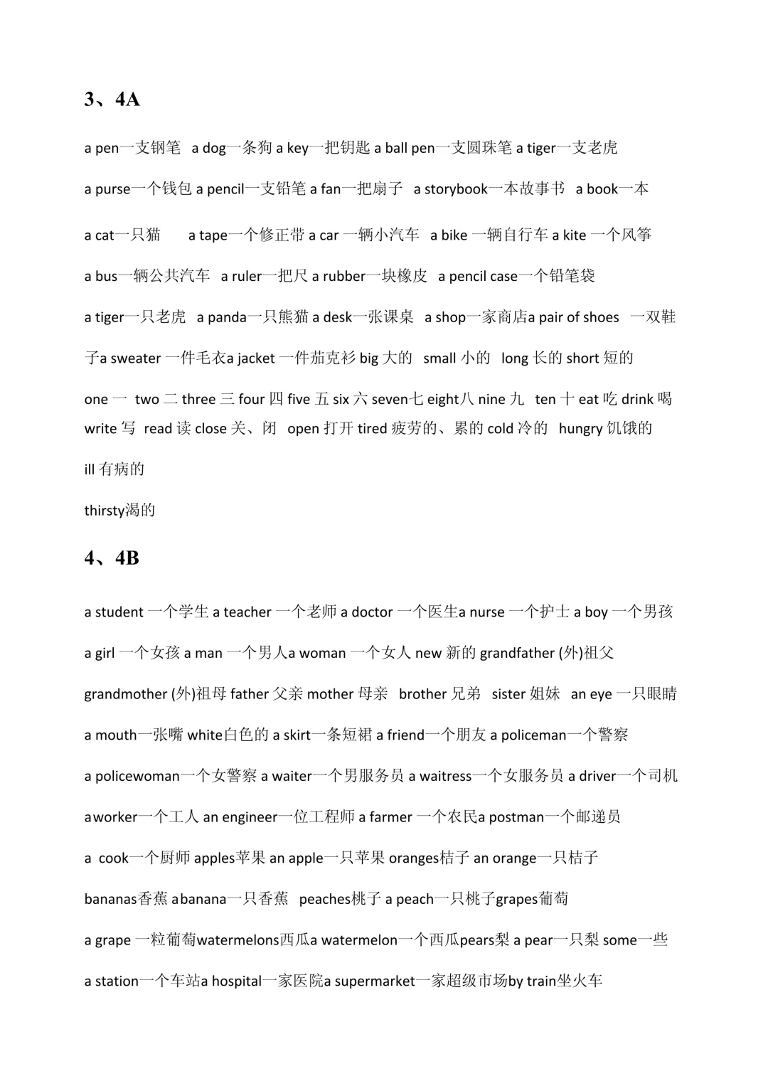 一、全年级单词汇总(3A–6B)
